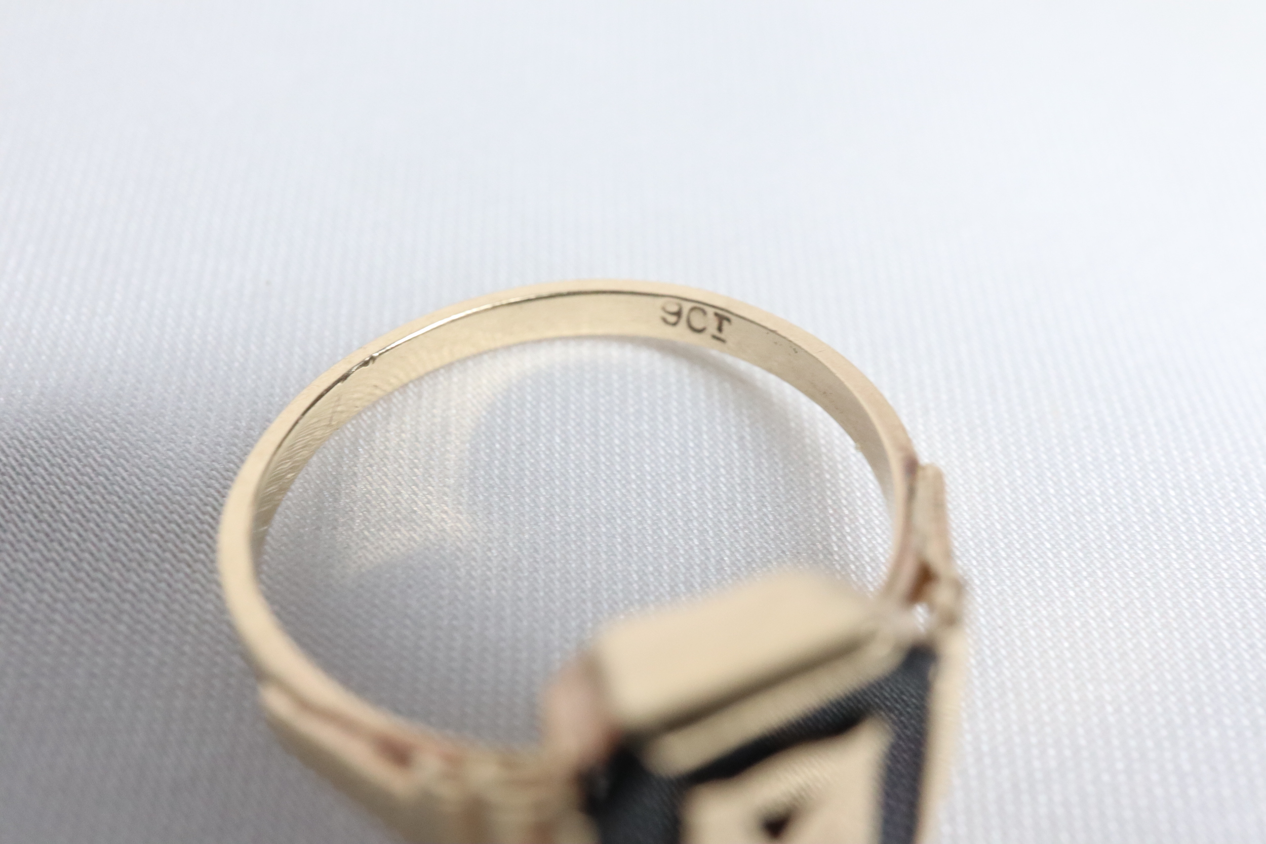 Wewnątrz obrączki wybito znak probierczy ‘9CT’, potwierdzający autentyczność złota.