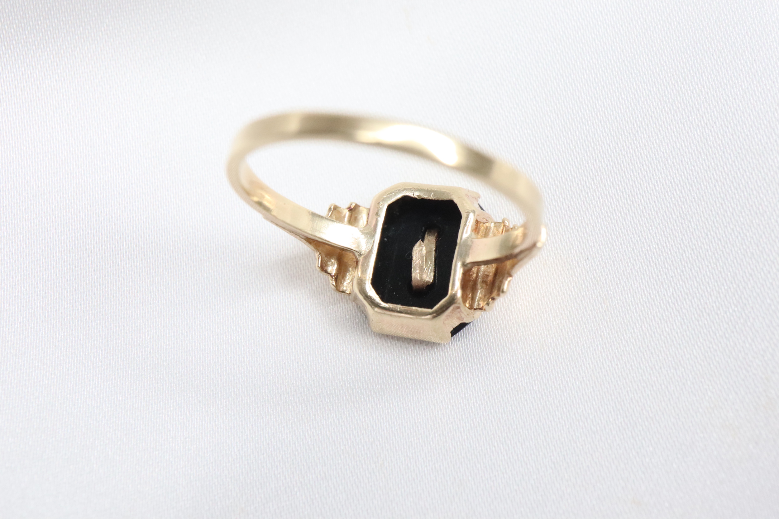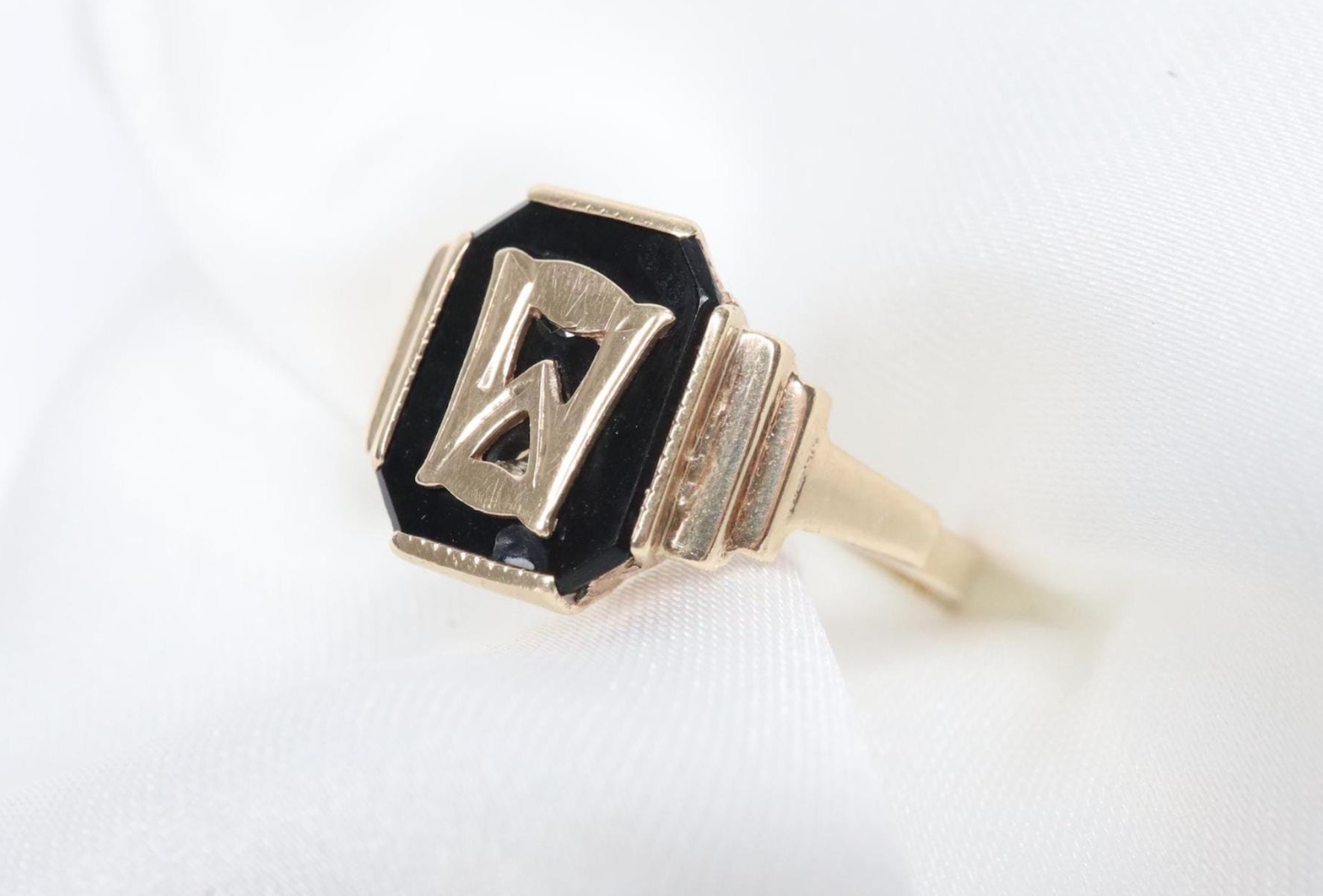 Antyczny Złoty Sygnet z Czarnego Onyksu i Inicjałem „M” lub „W”,9K