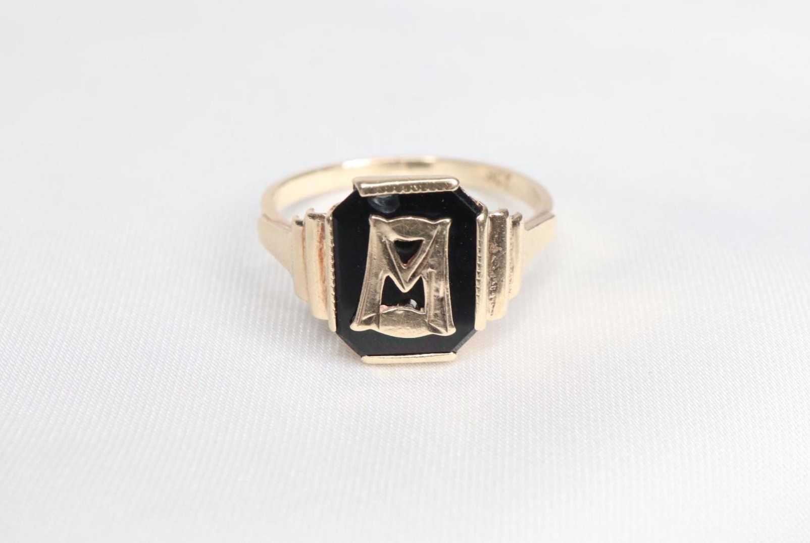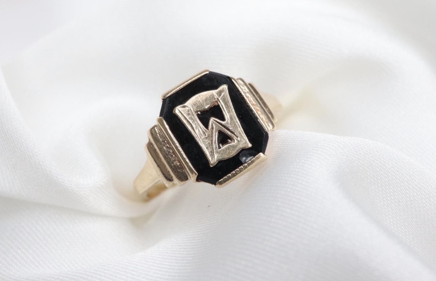 Strona główna » Sklep » Antyczny Złoty Sygnet z Czarnego Onyksu i Inicjałem „M” lub „W”,9K