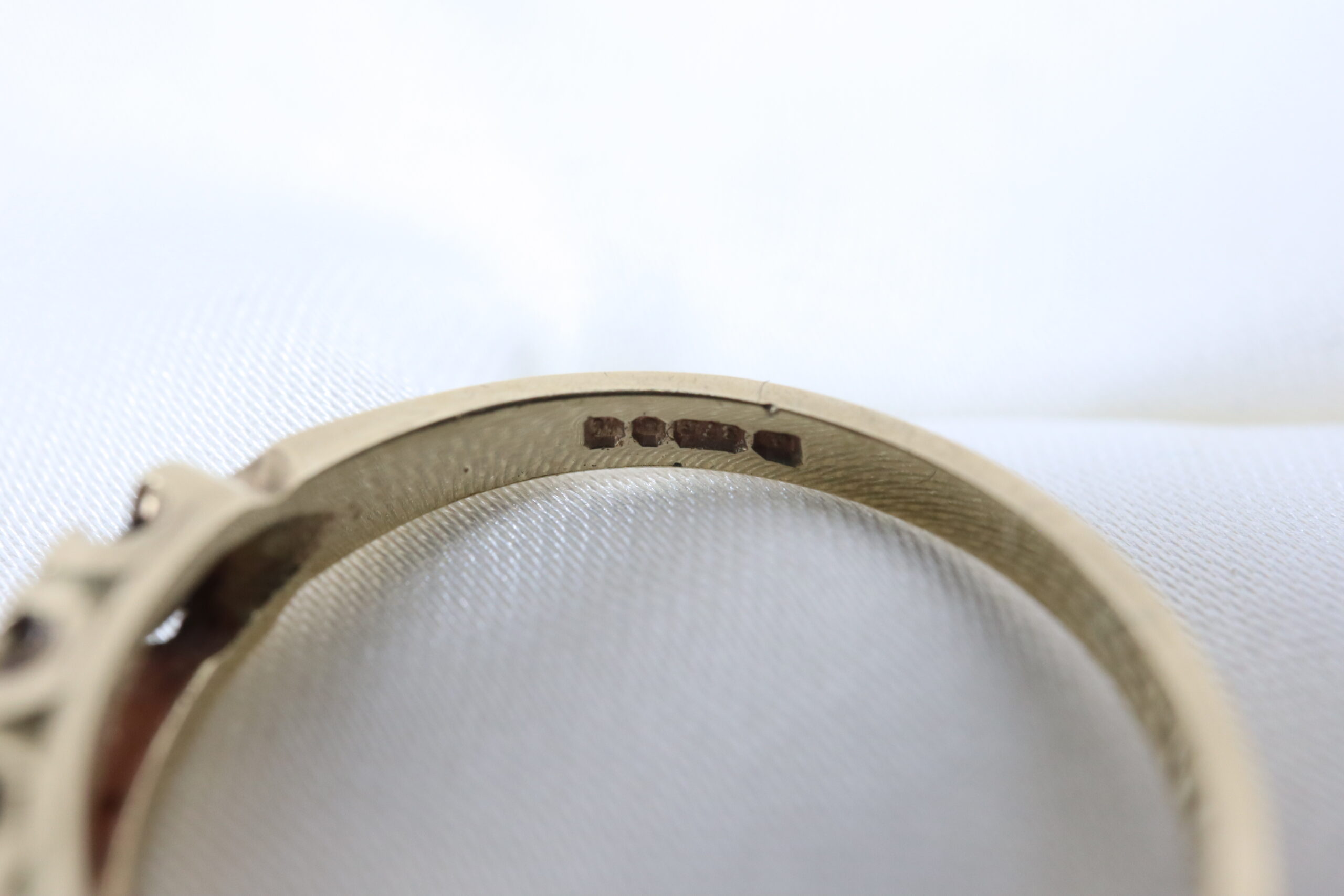 Kamienie są harmonijnie rozmieszczone, a oprawę zdobi subtelny grawerunek, nadający całości charakteru i uroku w stylu vintage.