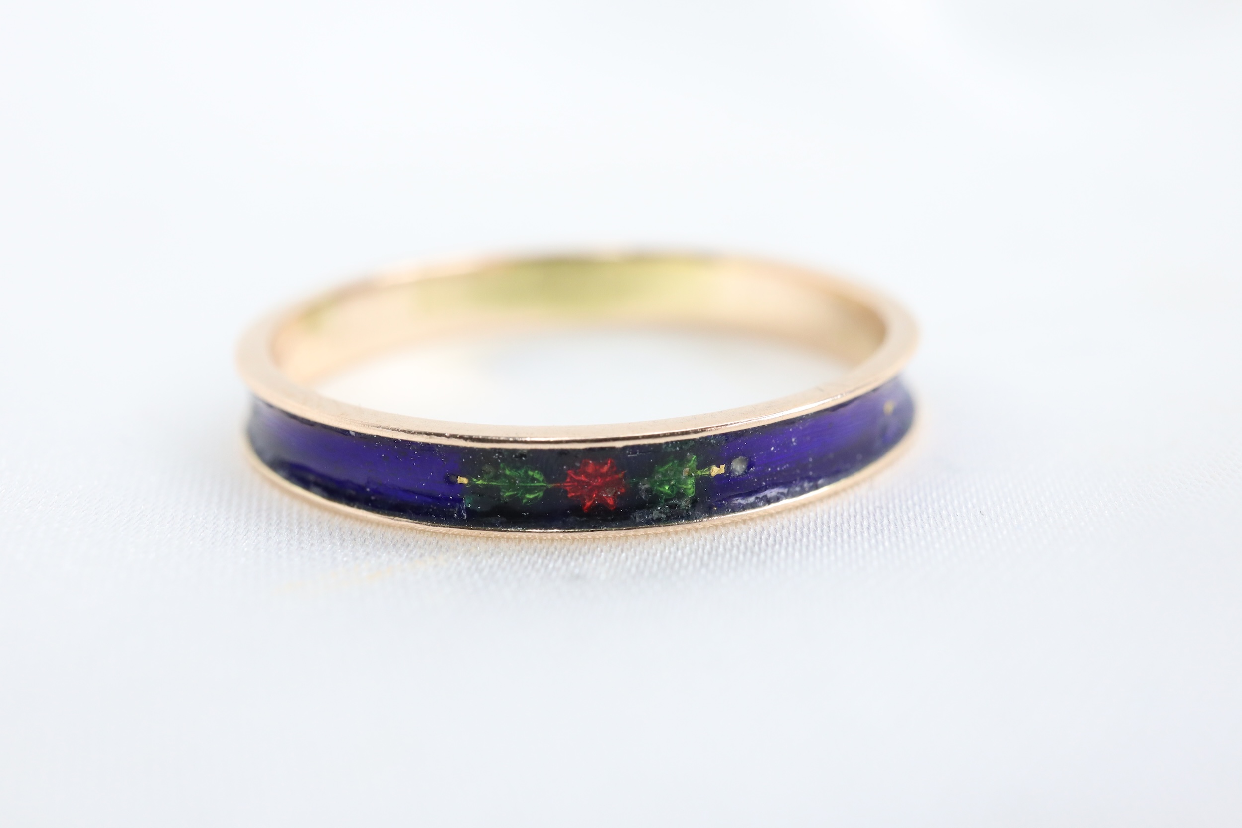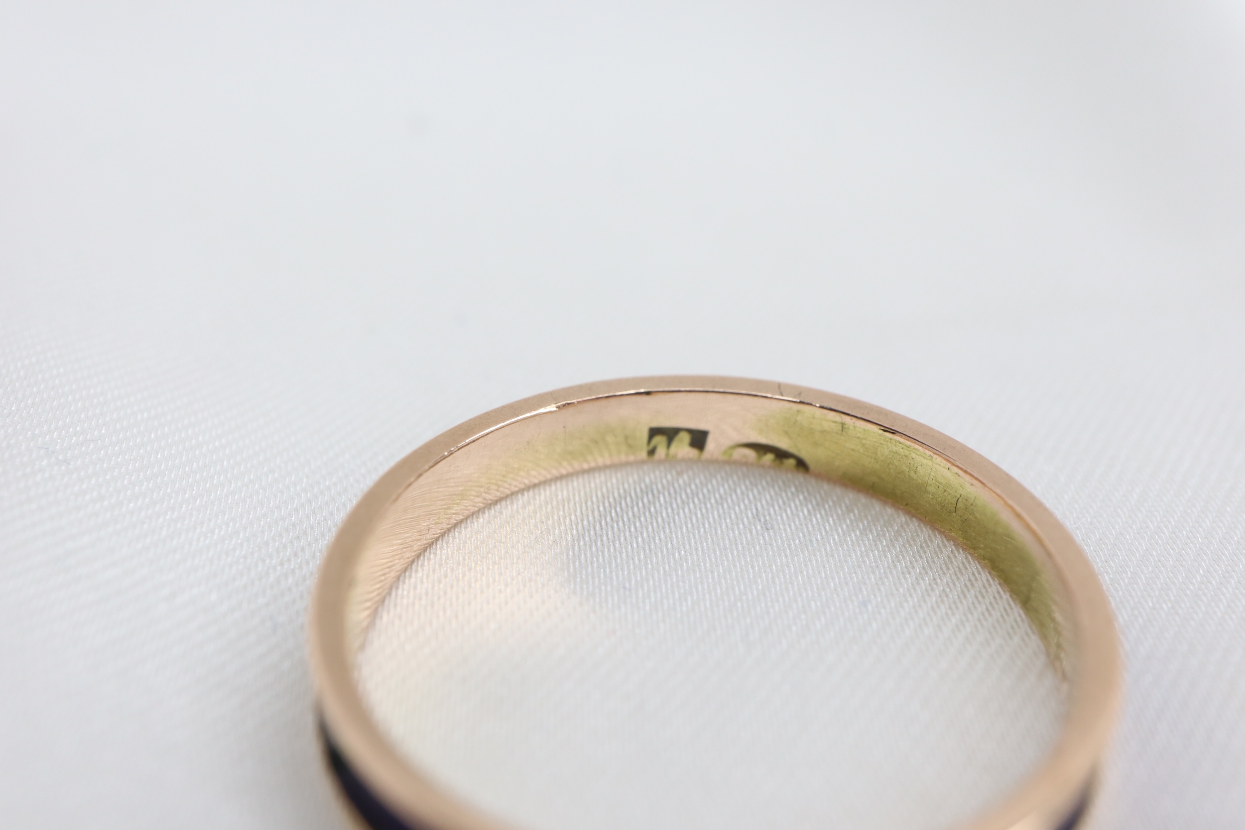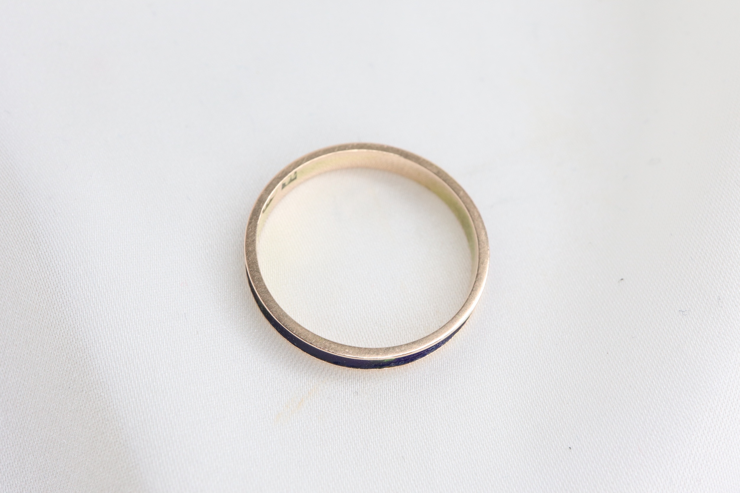 Bardzo nietypowy, vintage/antyczny pierścionek/obrączka wykonana ze złota próby 14 ct, w całości pokryty królewską niebieską emalią.