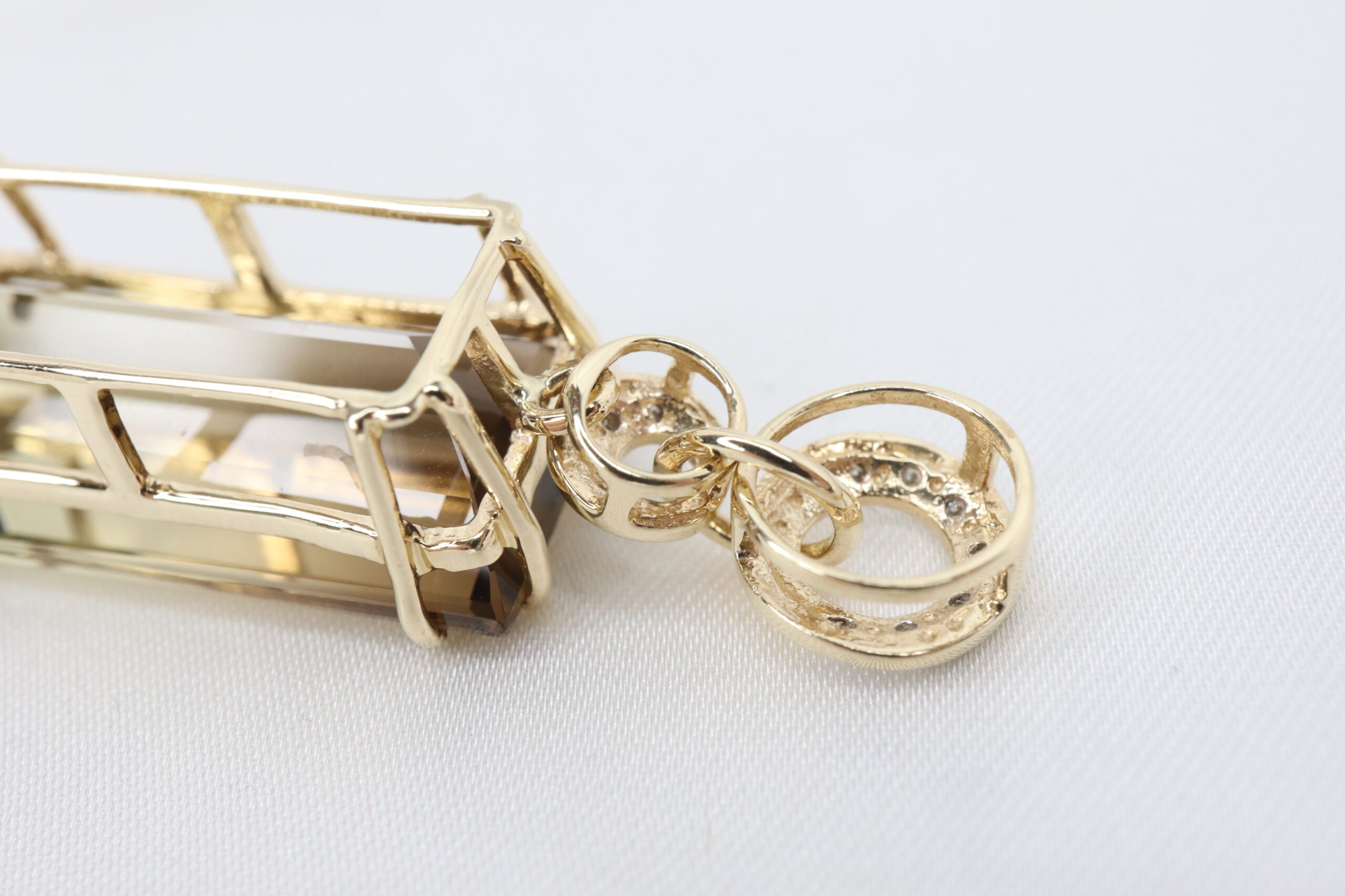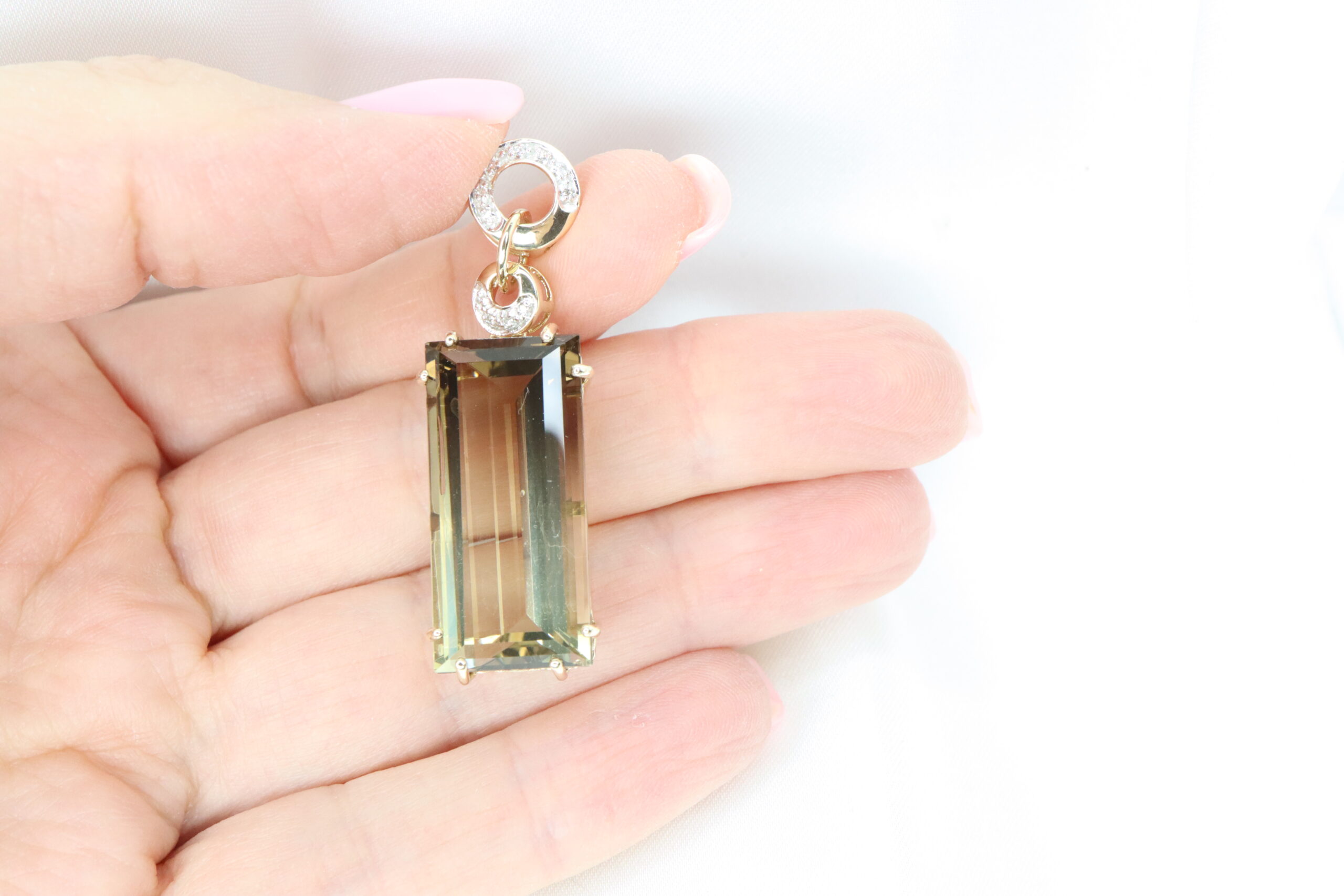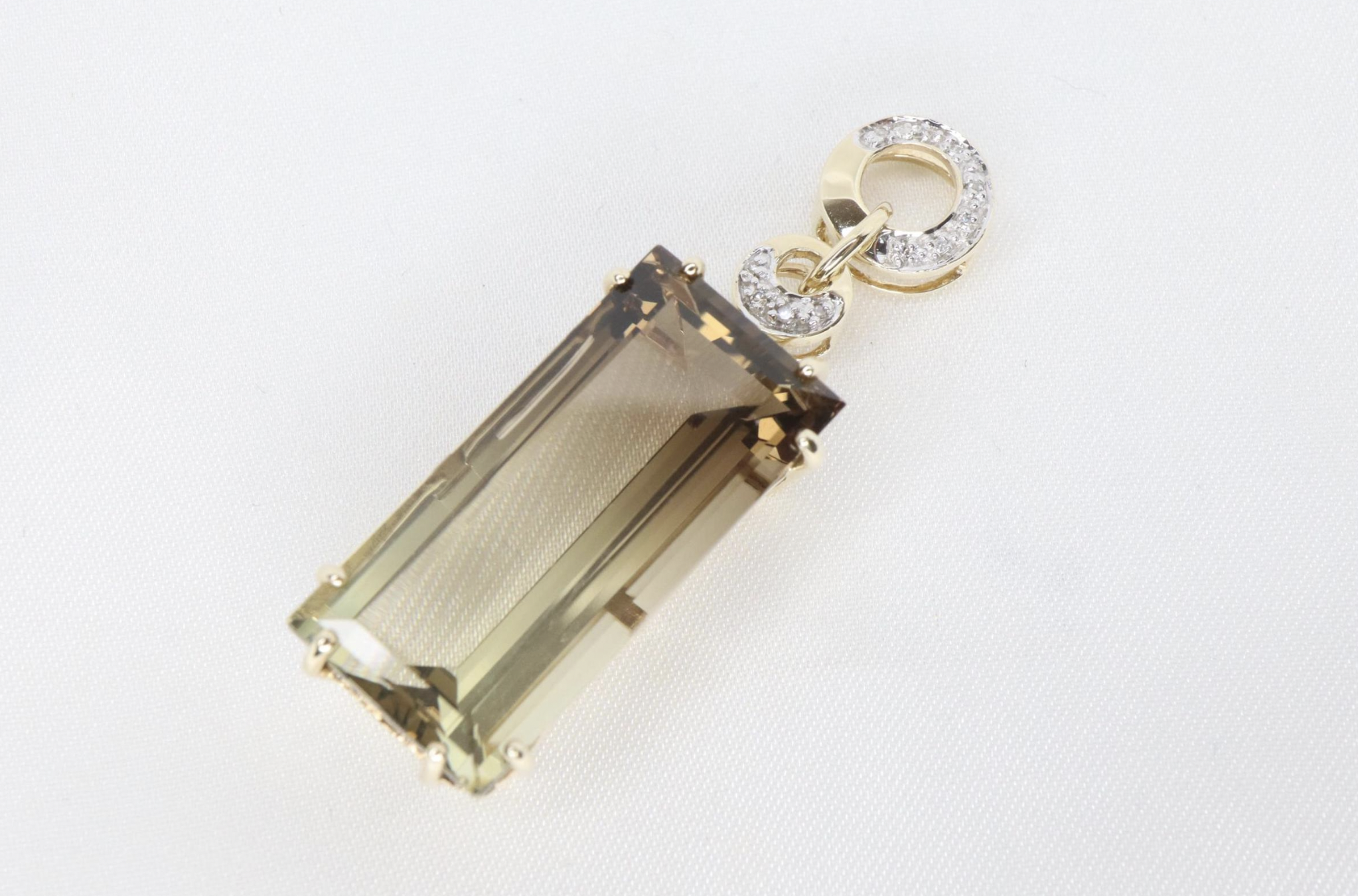 Elegancki wisiorek z 9-karatowego złota z diamentami i dużym prostokątnym kwarcem dymnym
