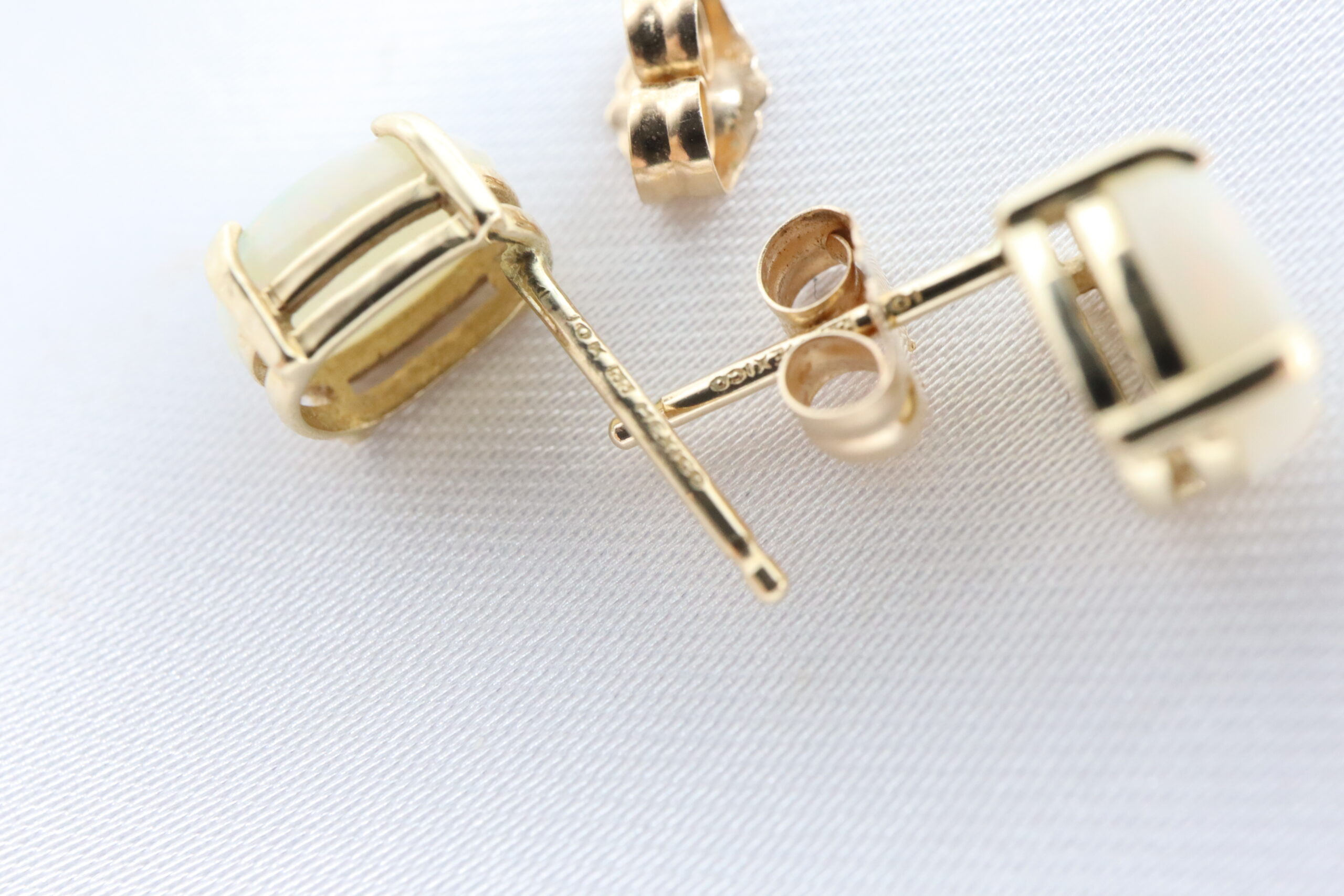 Piękna para delikatnych kolczyków z naturalnymi opalami, osadzonych w eleganckim 10-karatowym żółtym złocie.
