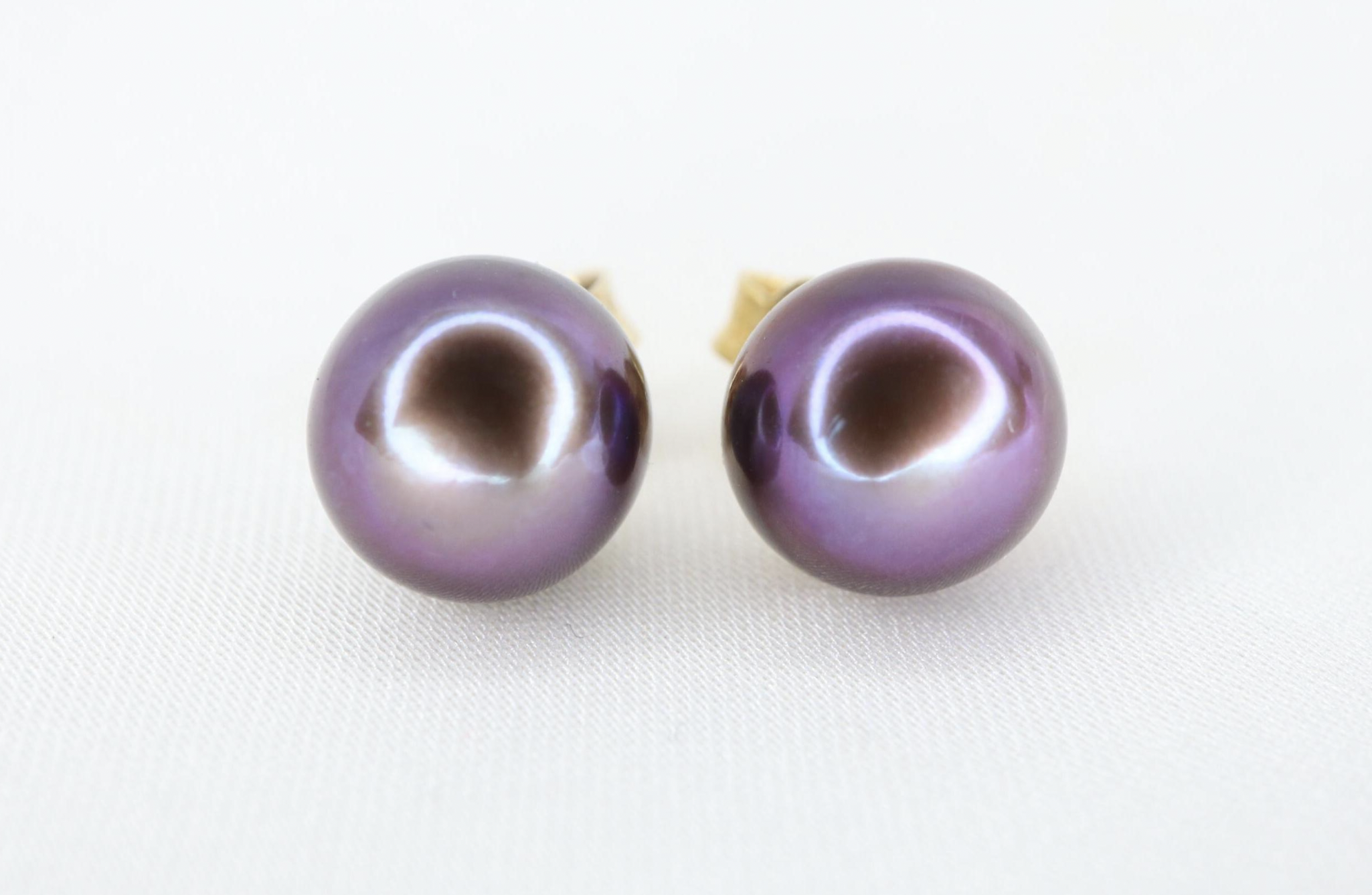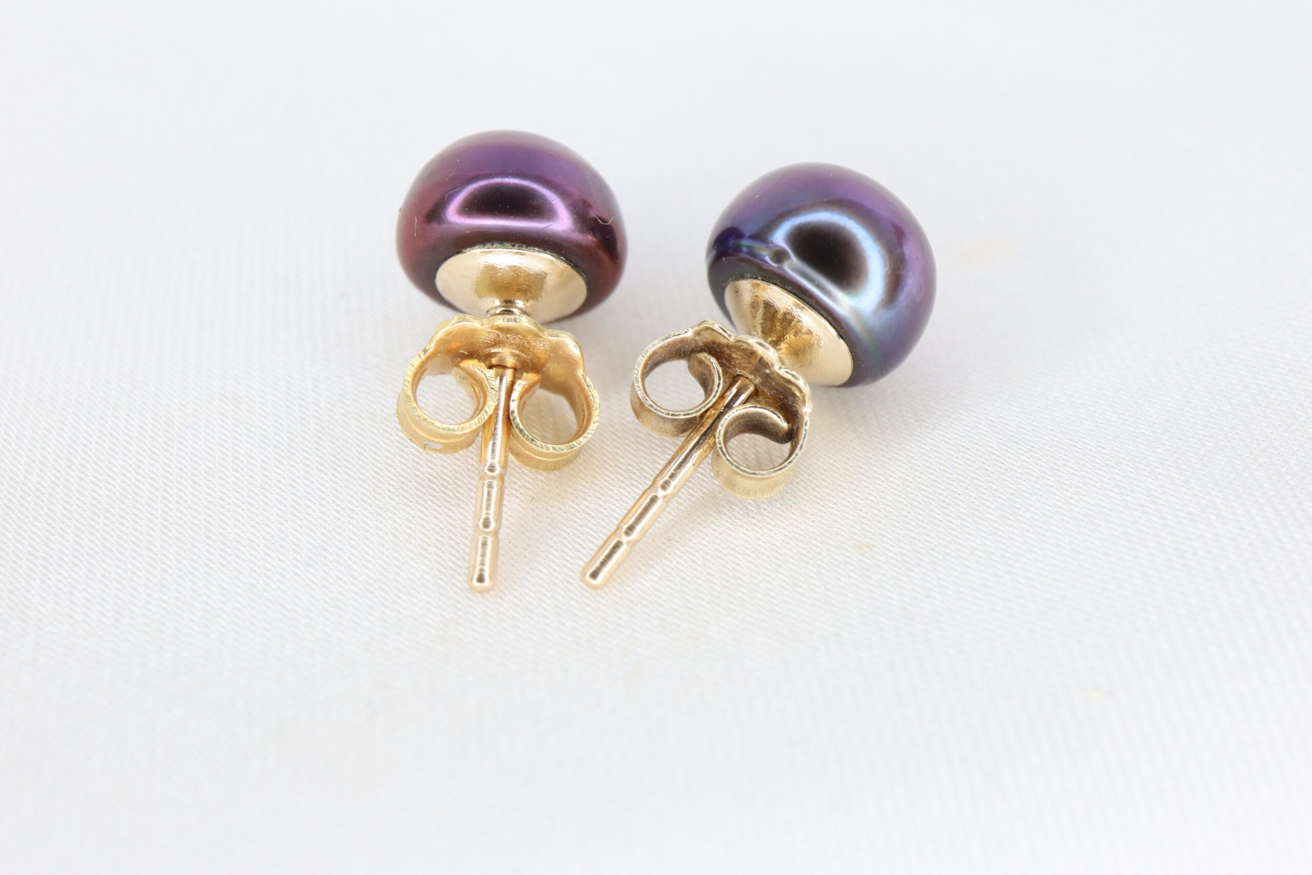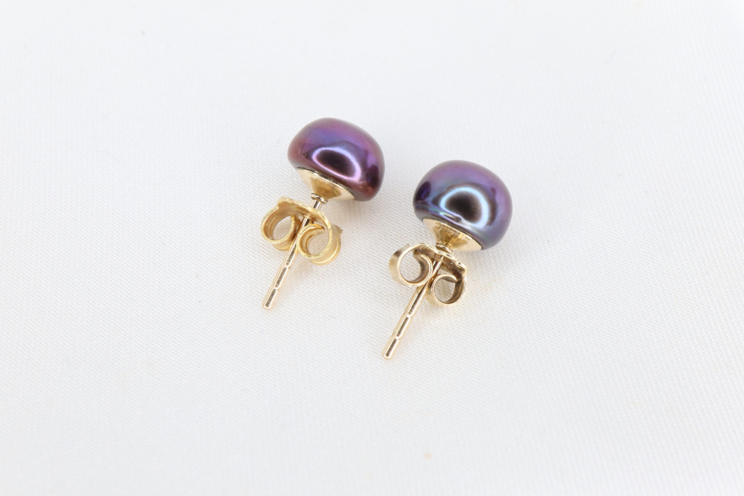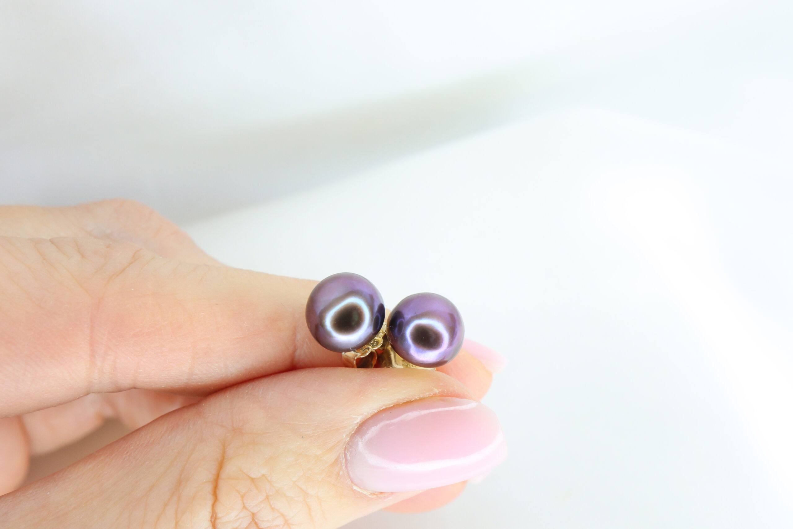 Złote Kolczyki 14K (p.585) z Ciemnymi Perłami, 7 mm