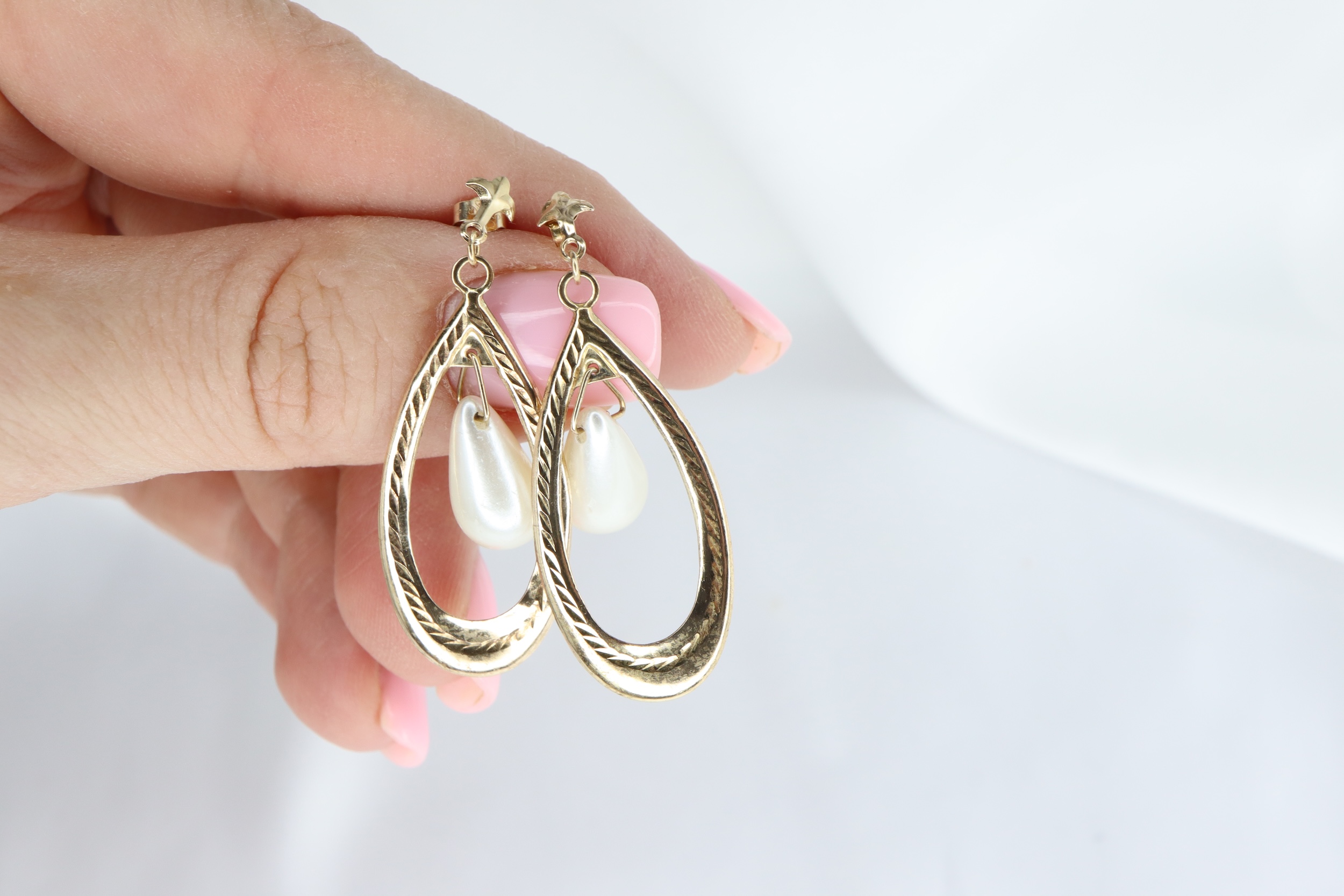 Strona główna » Sklep » Złote Kolczyki Vintage 9K (375) z Imitacją Perły, Wiszące