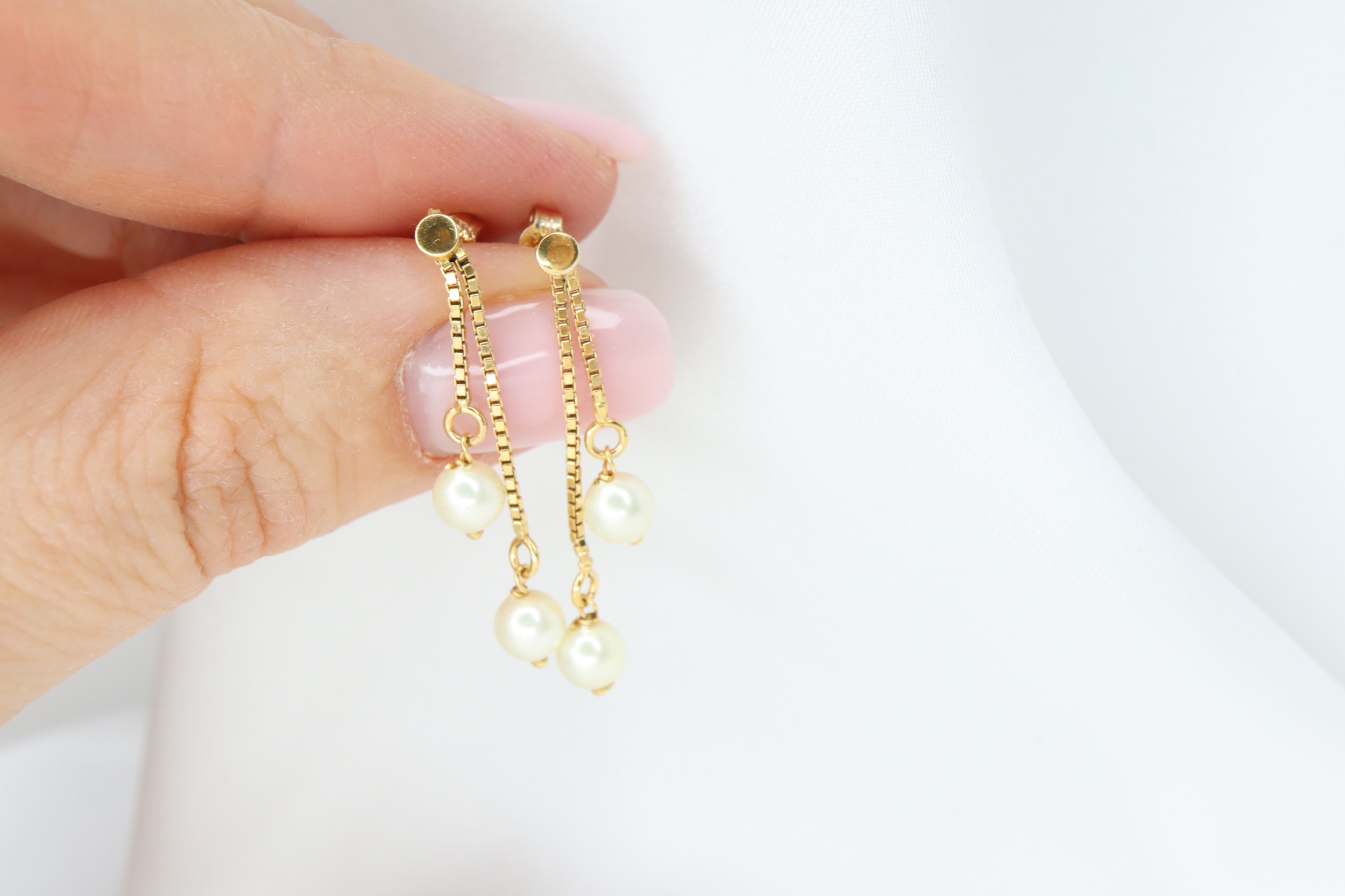 Kolczyki wiszące z 9-karatowego złota z podwójnym łańcuszkiem i perłami