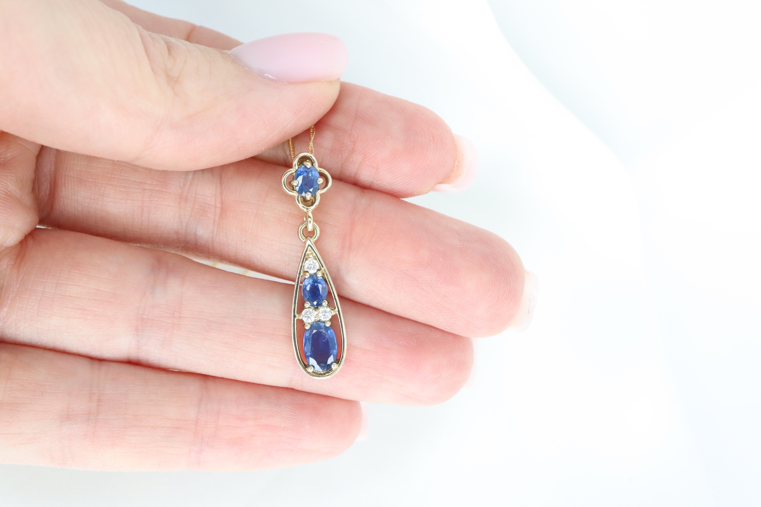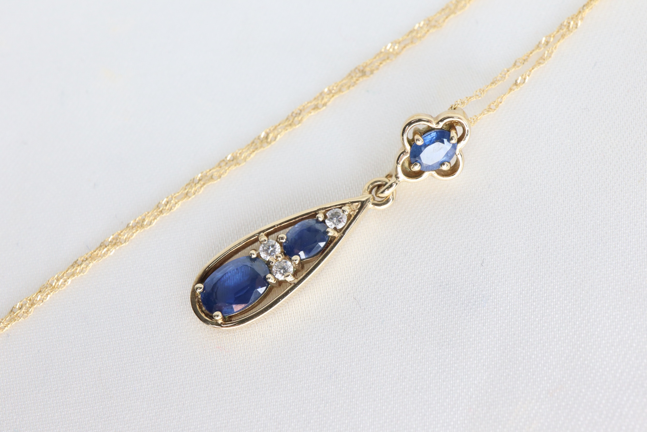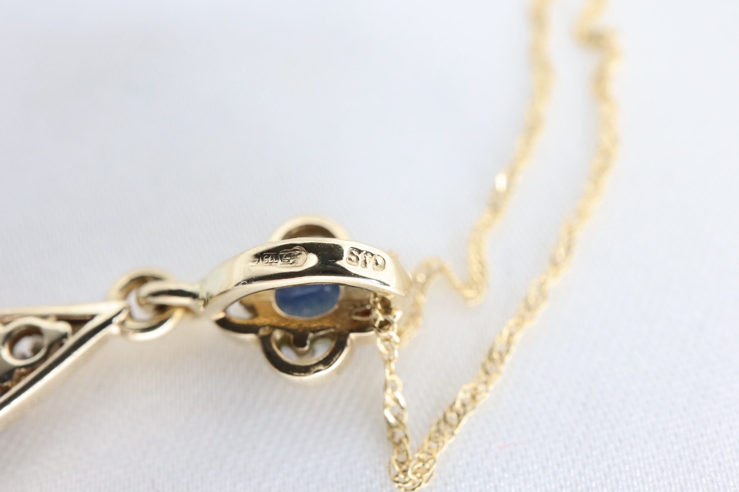 Naszyjnik z wisiorkiem z 9-karatowego złota z szafirem i diamentami – 45 cm