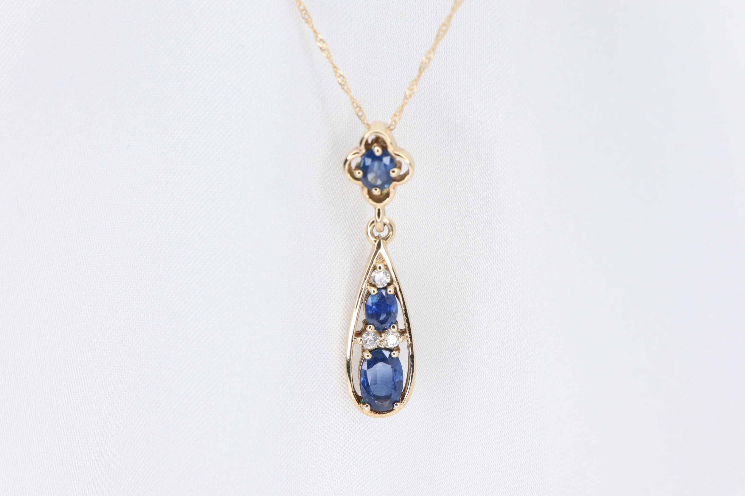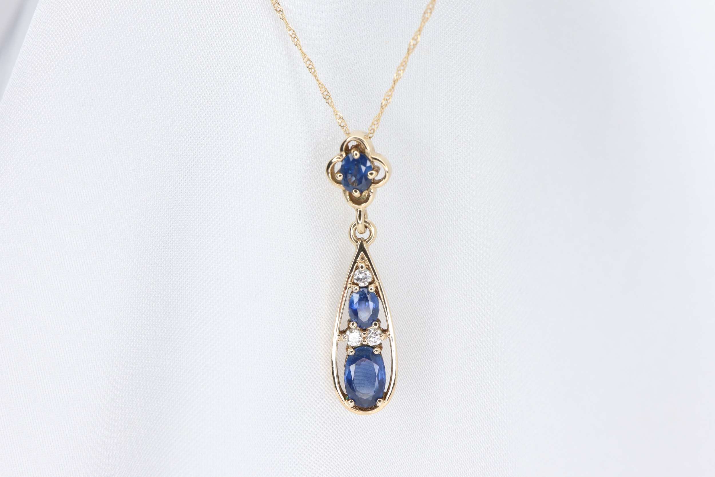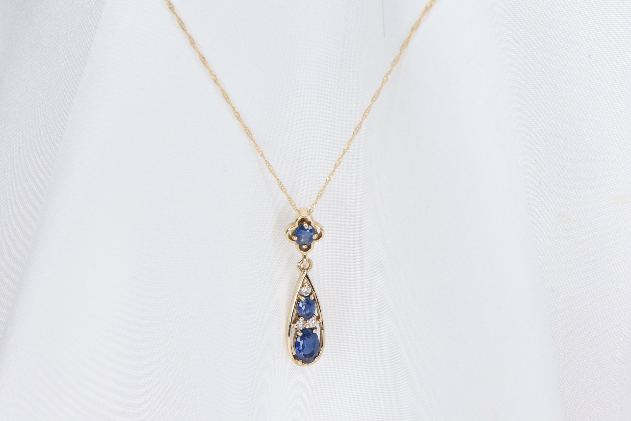 Naszyjnik z wisiorkiem z 9-karatowego złota z szafirem i diamentami – 45 cm