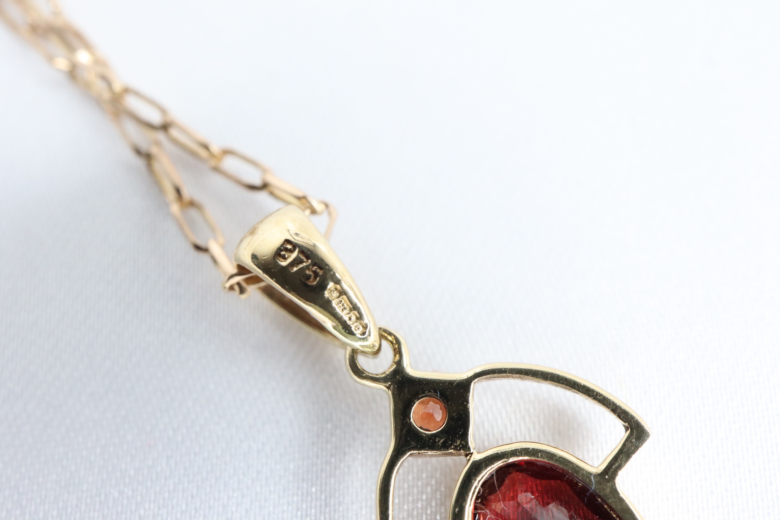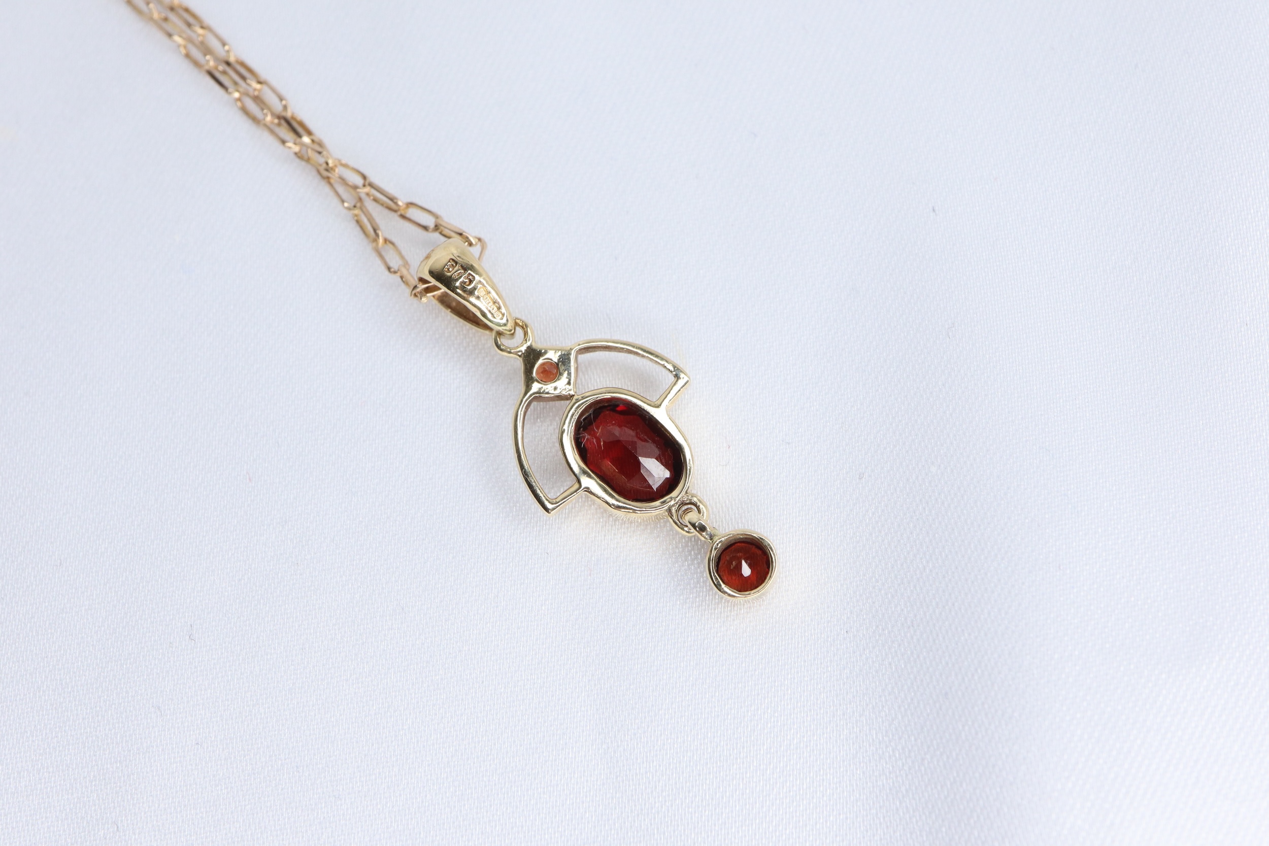 Piękny naszyjnik vintage z zawieszką typu lavalier, wykonany z 9-karatowego żółtego złota, inspirowany eleganckim stylem Art Deco.