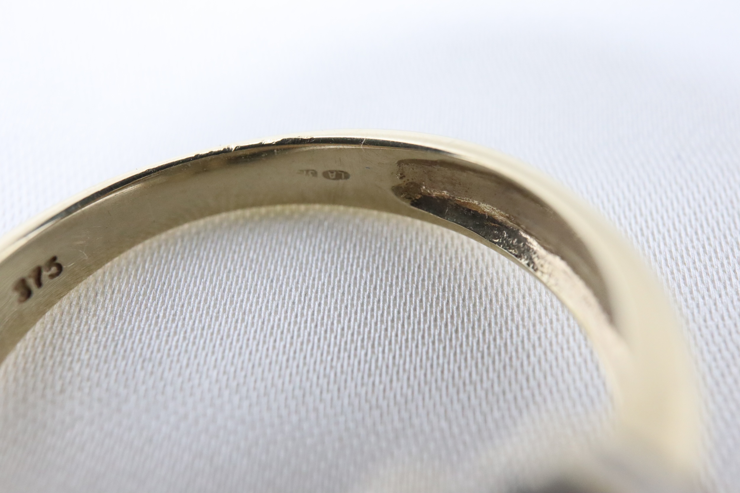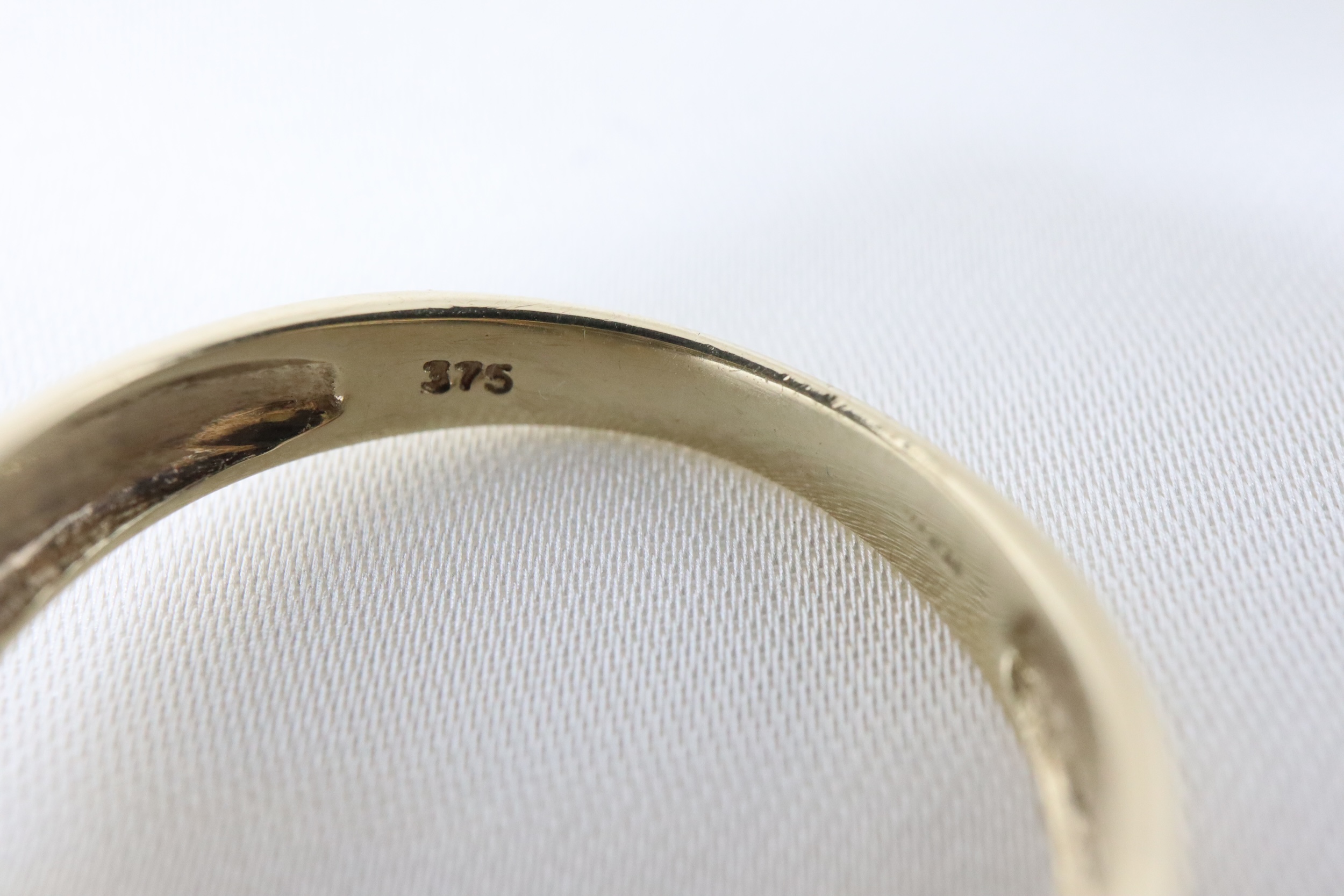 Biżuteria jest cechowana próbą złota 9 ct (375), pozostałe cechy są nieczytelne.