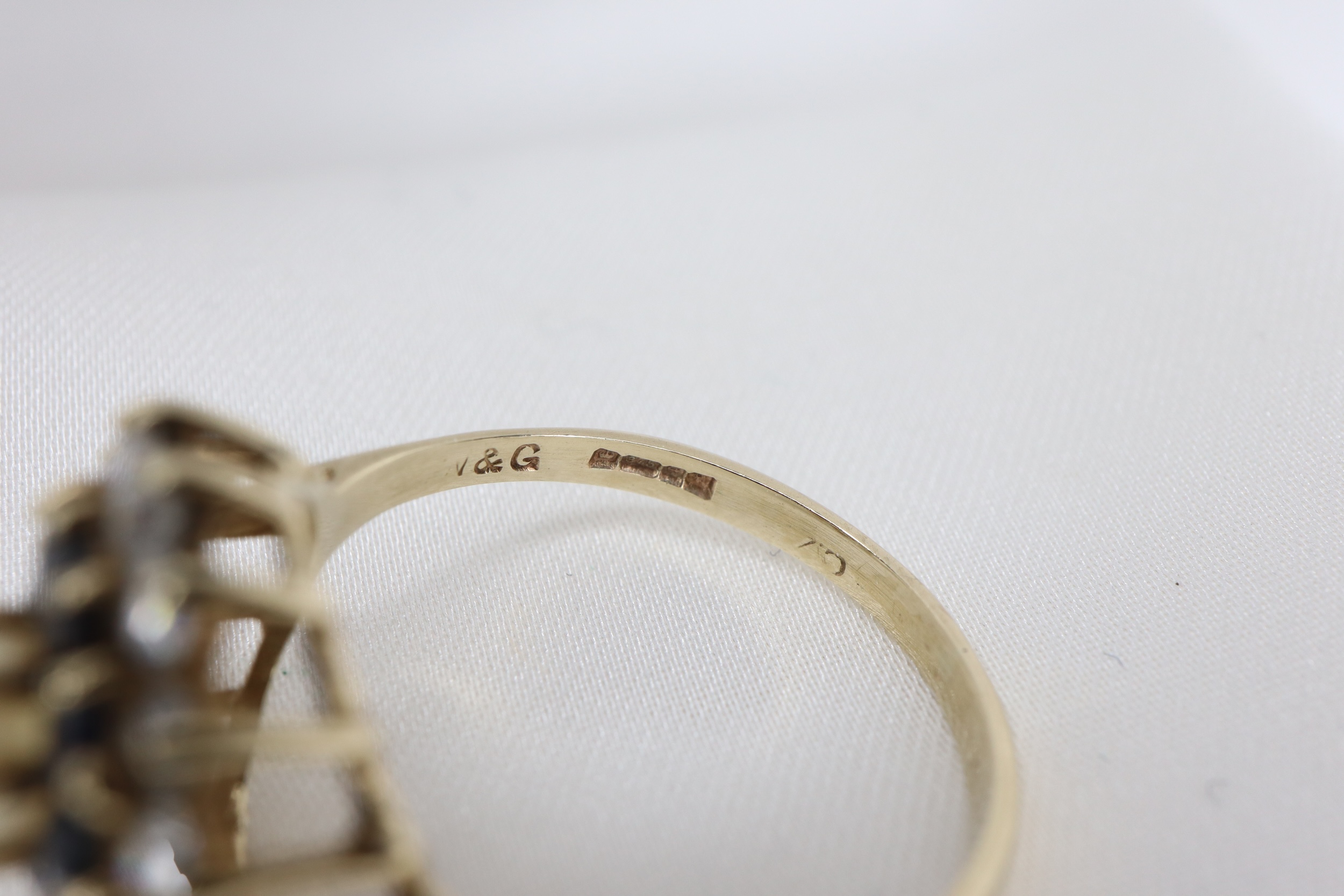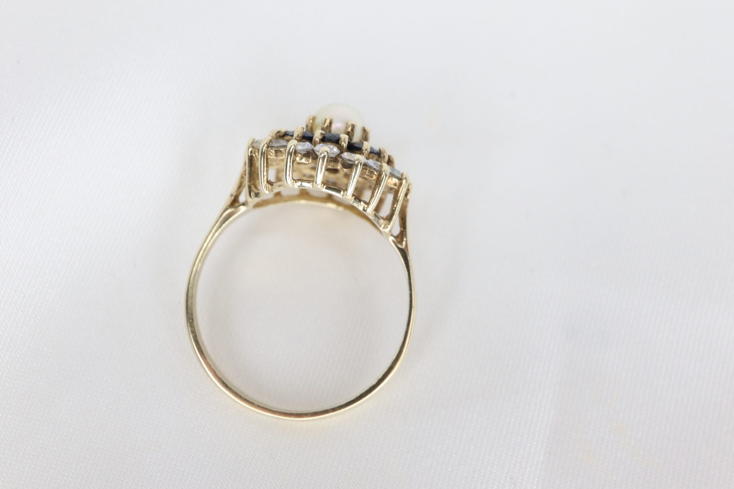 Vintage pierścionek z 9-karatowego złota z szafirami, perłą i cyrkoniami – rozmiar EU 17