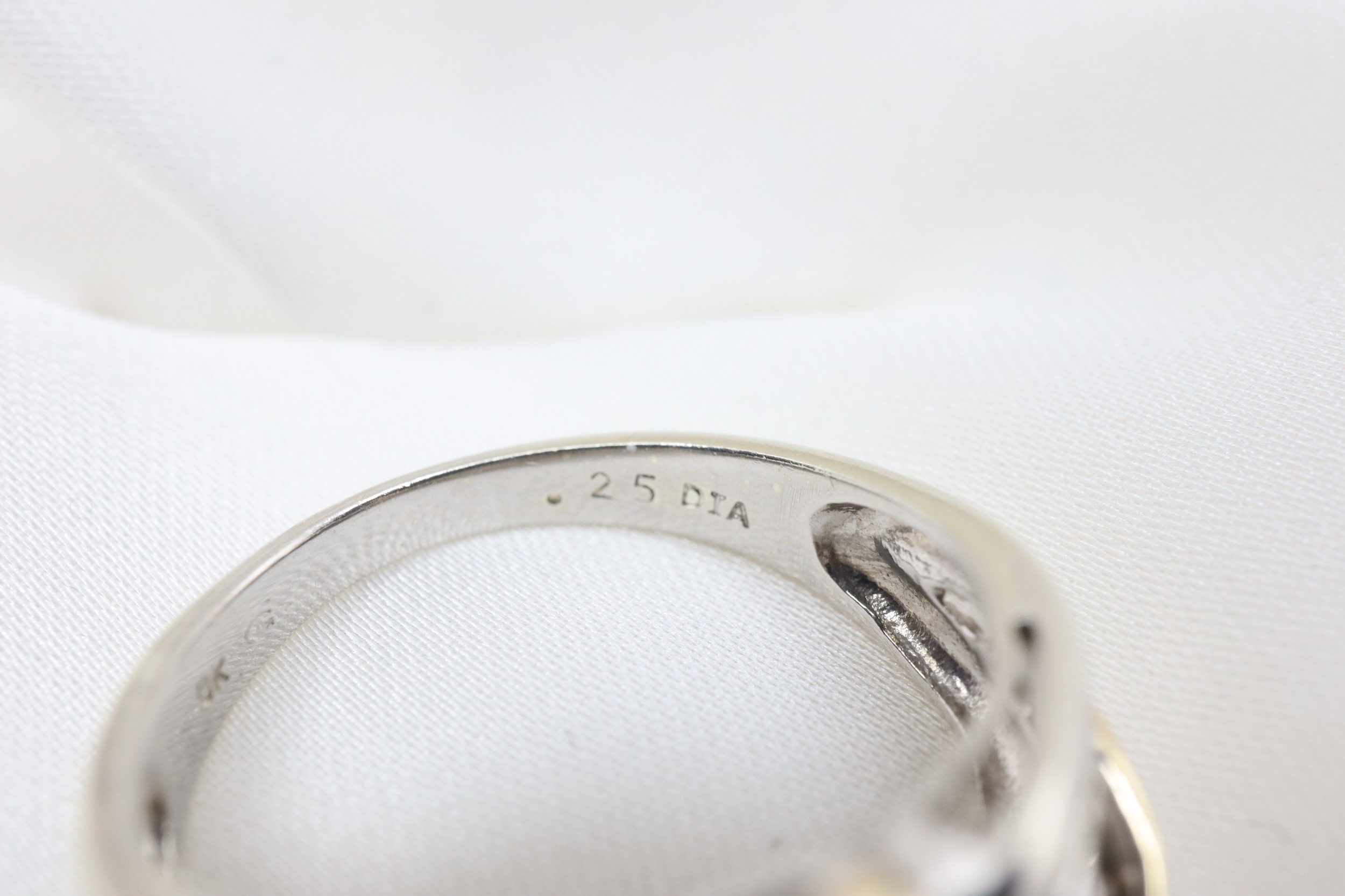 Łączna masa diamentów 0,25 ct jest wybita wewnątrz obrączki.