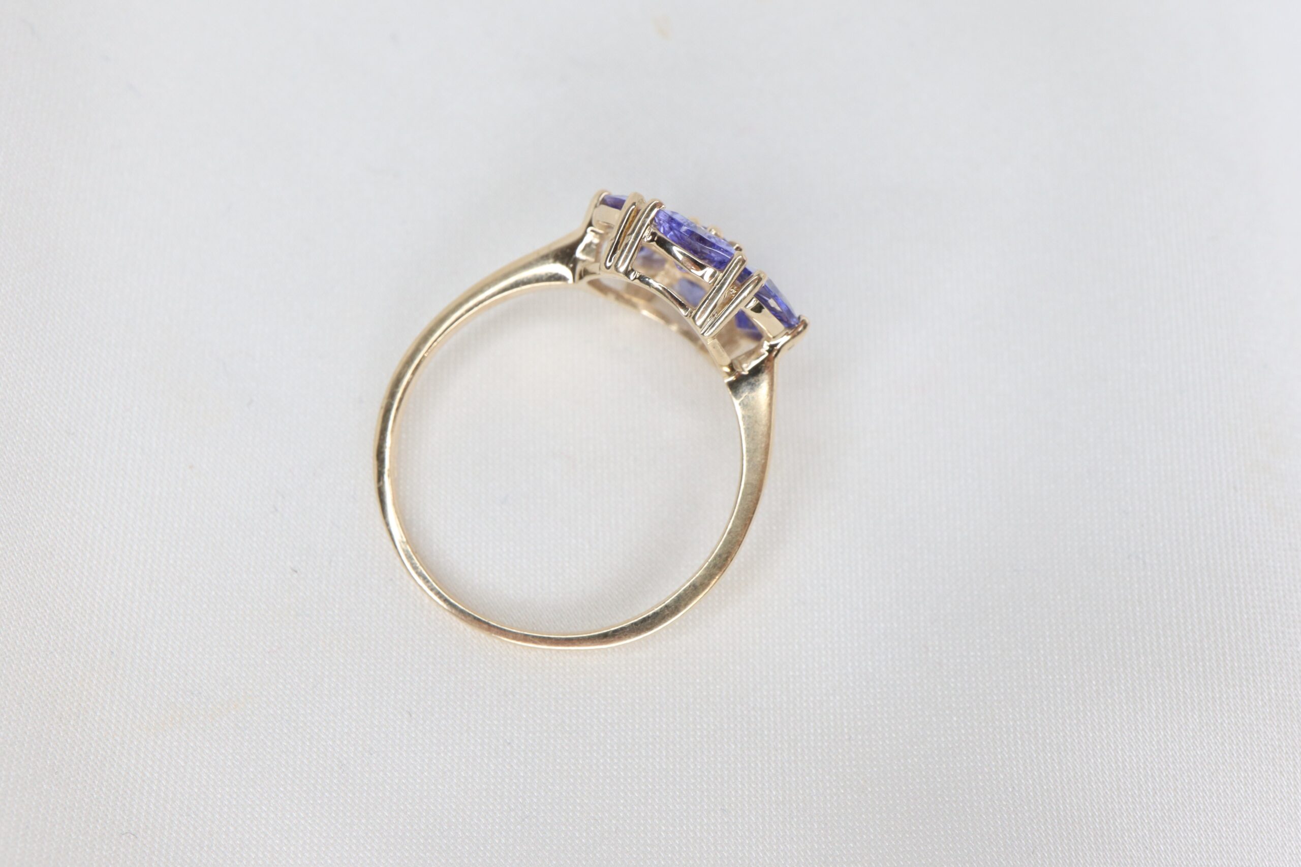 Złoty Pierścionek 9K (p.375) z Tanzanitami, r. 19,5