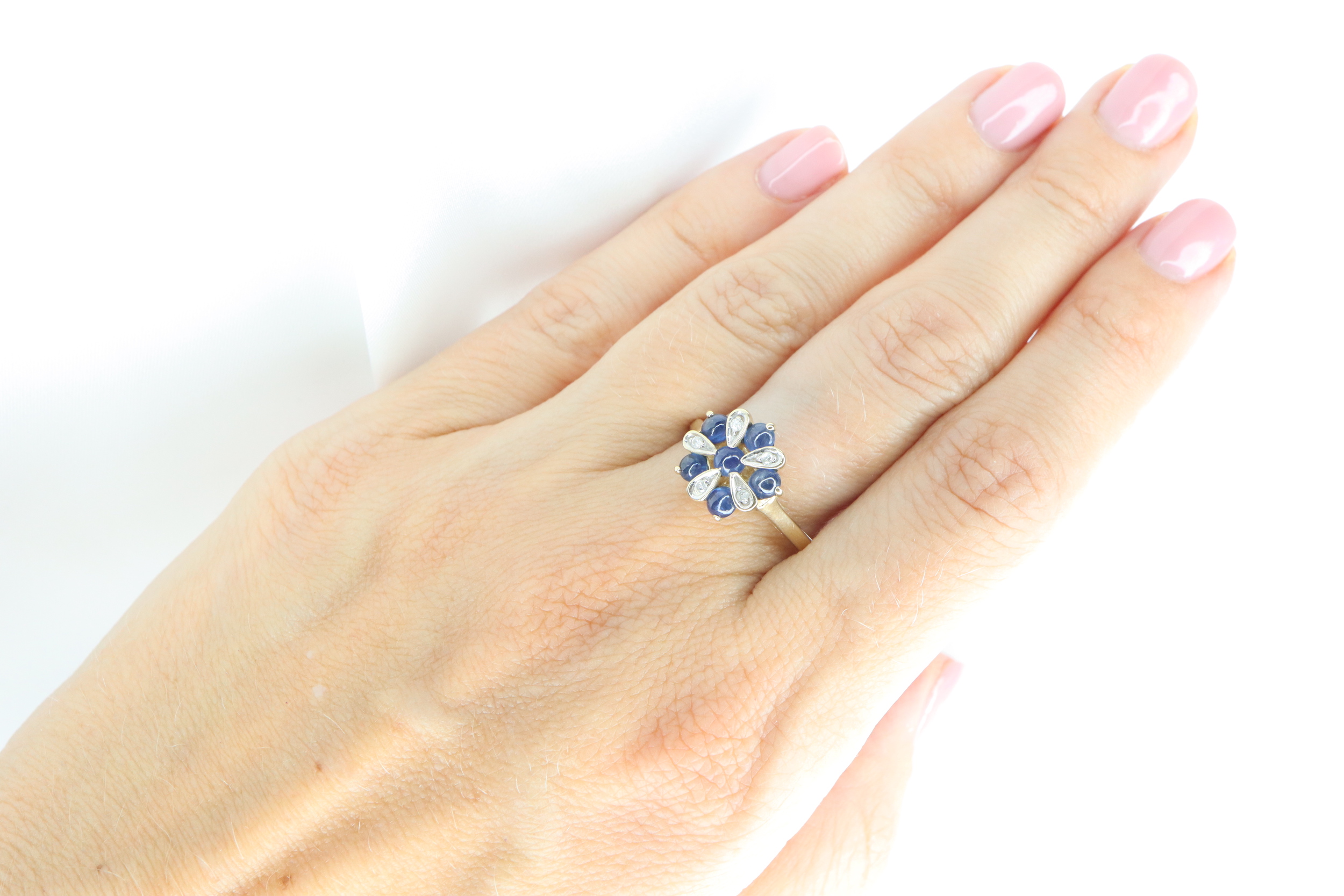 Strona główna » Sklep » Złoty Pierścionek 9K z Szafirowo – Diamentowym Kwiatem, r. 14
