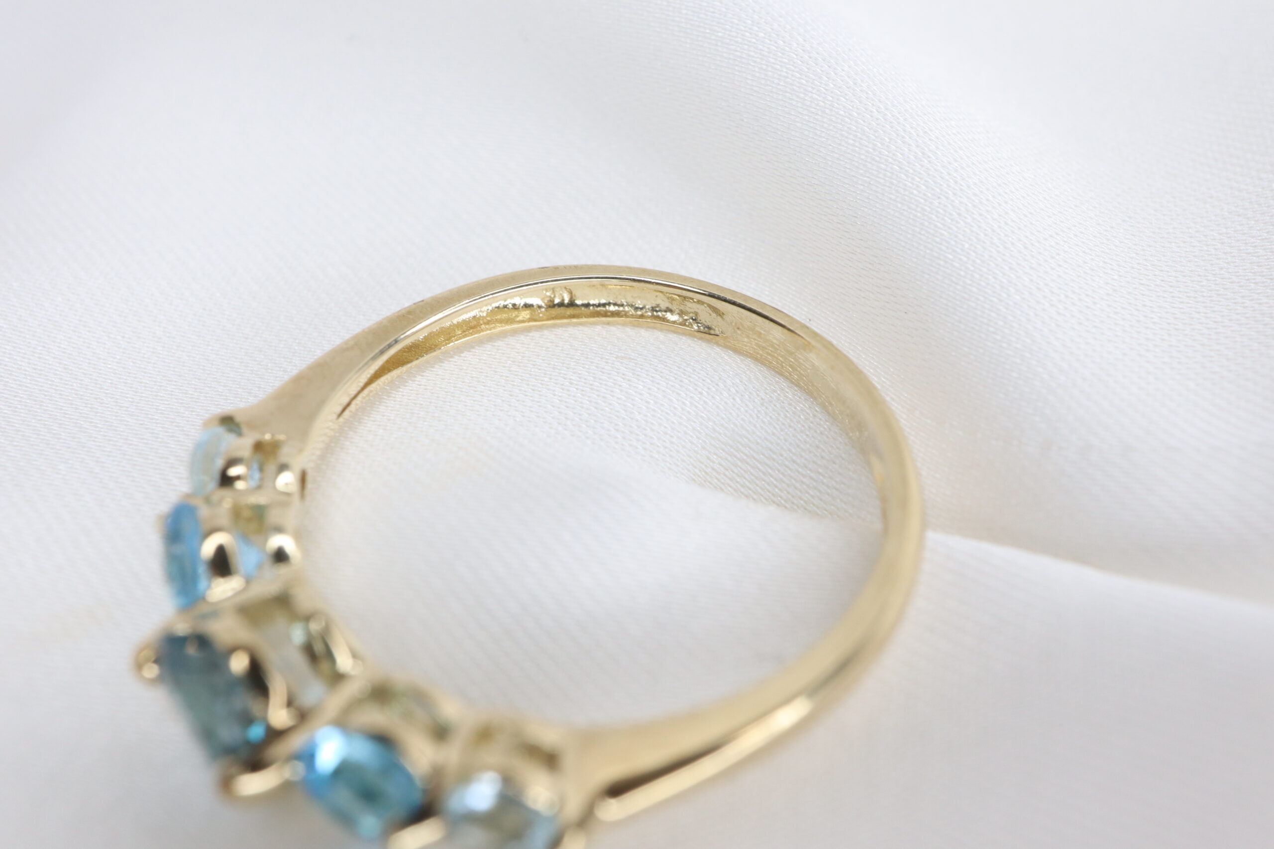 Strona główna » Sklep » Złoty Pierścionek 9K z Wielobarwnymi Niebieskimi Topazami, r.18