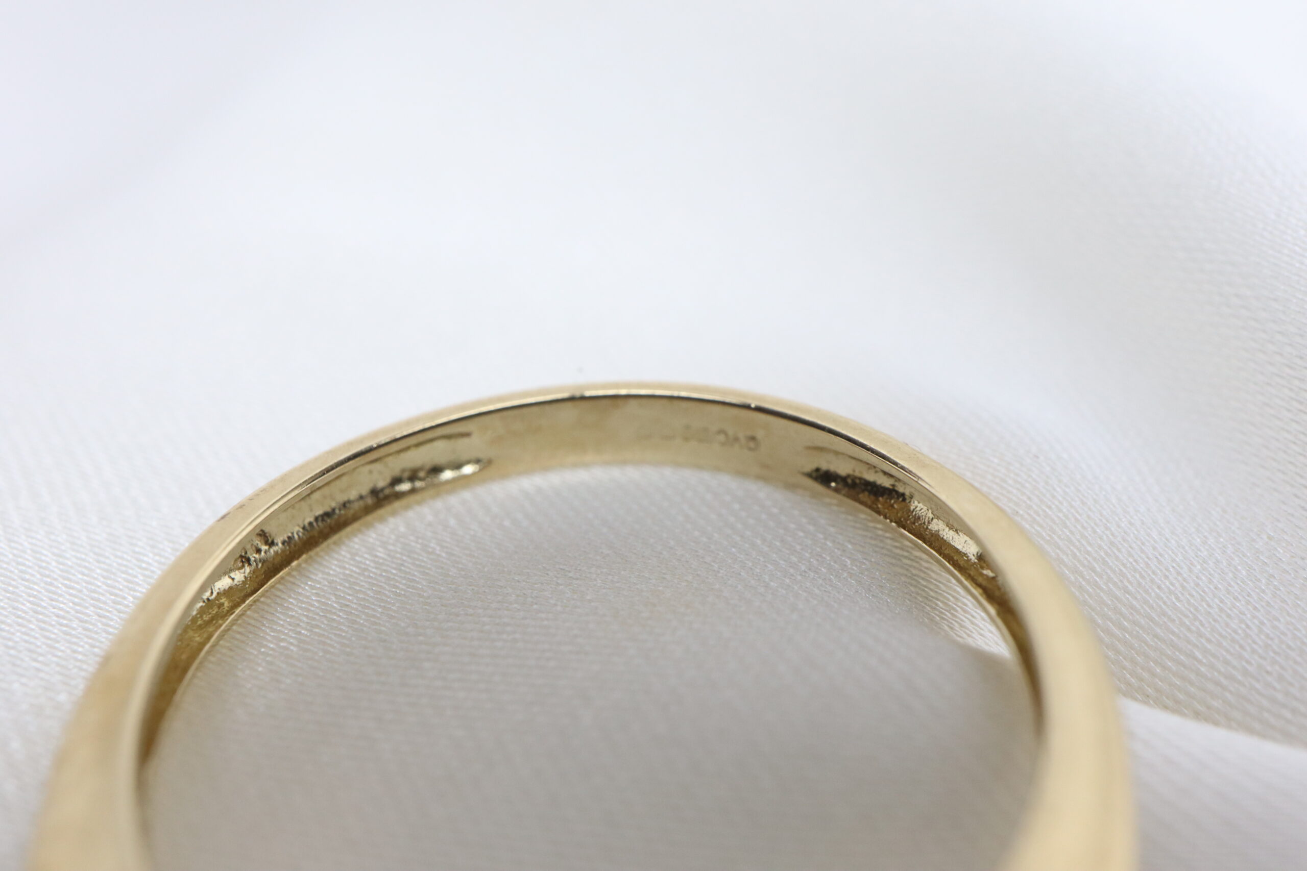 Wewnątrz obrączki widnieją: znak probierczy złota 9-karatowego (375), znak miasta Birmingham, a także sygnatura „QVC”, będąca oznaczeniem sponsora.
