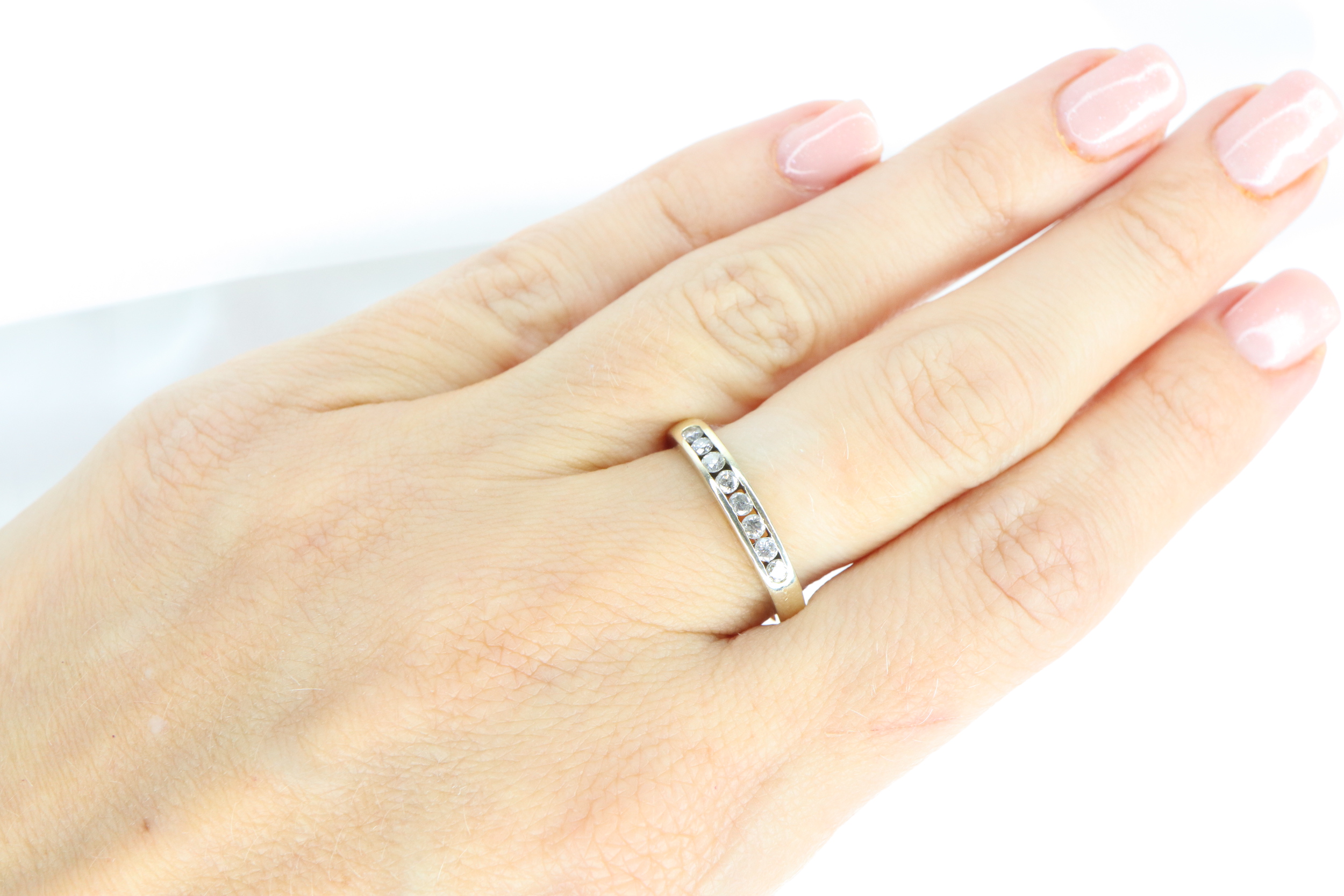 • Łączna masa diamentów to 0.25 ct (stempel wewnątrz obrączki).