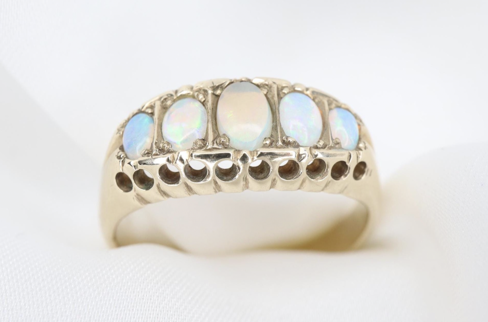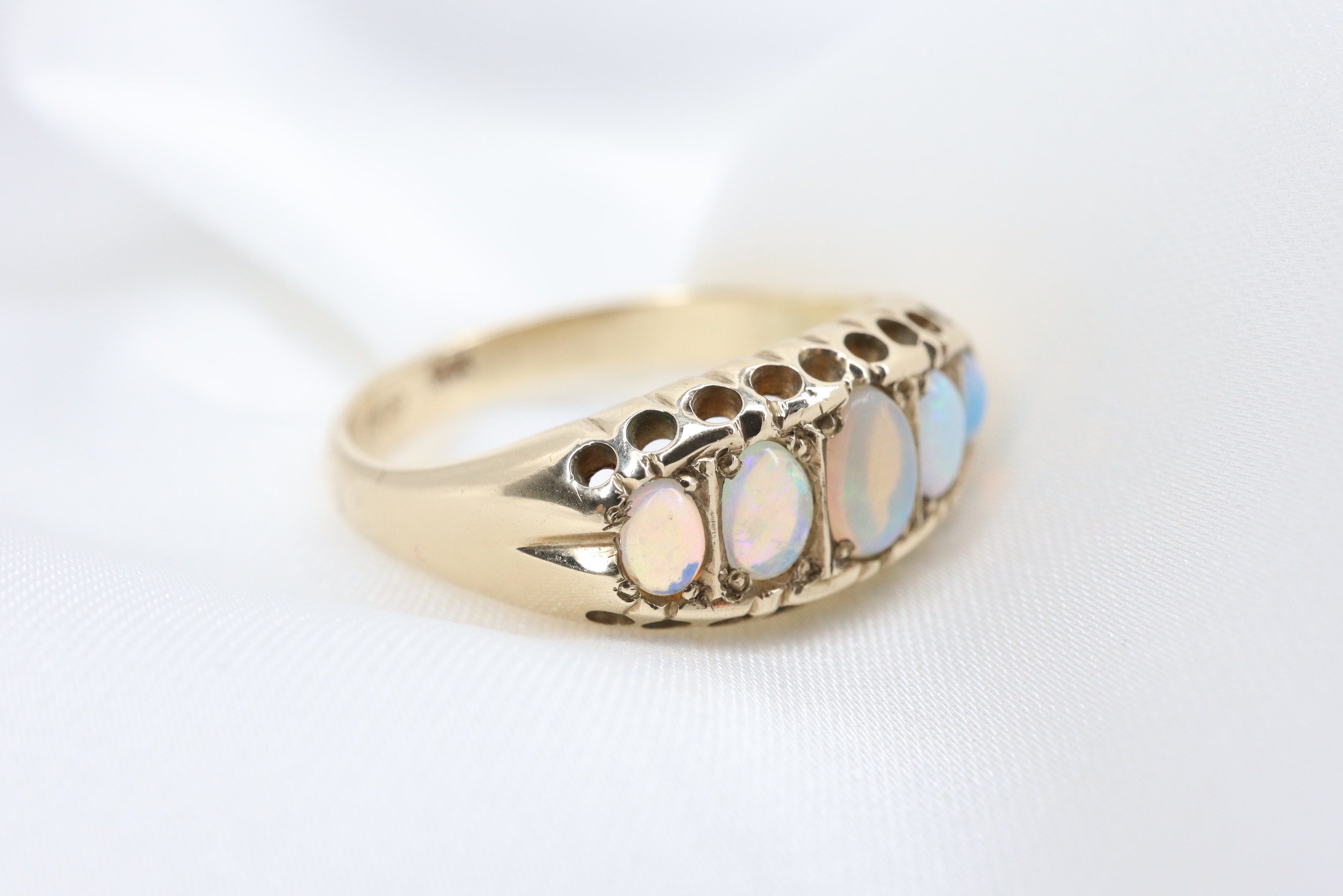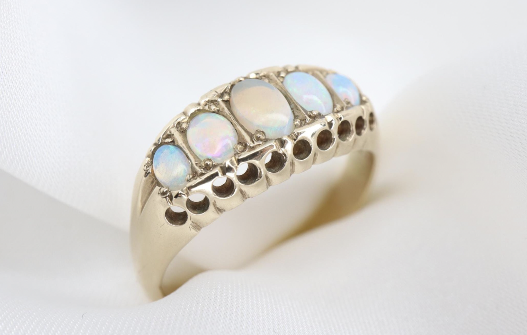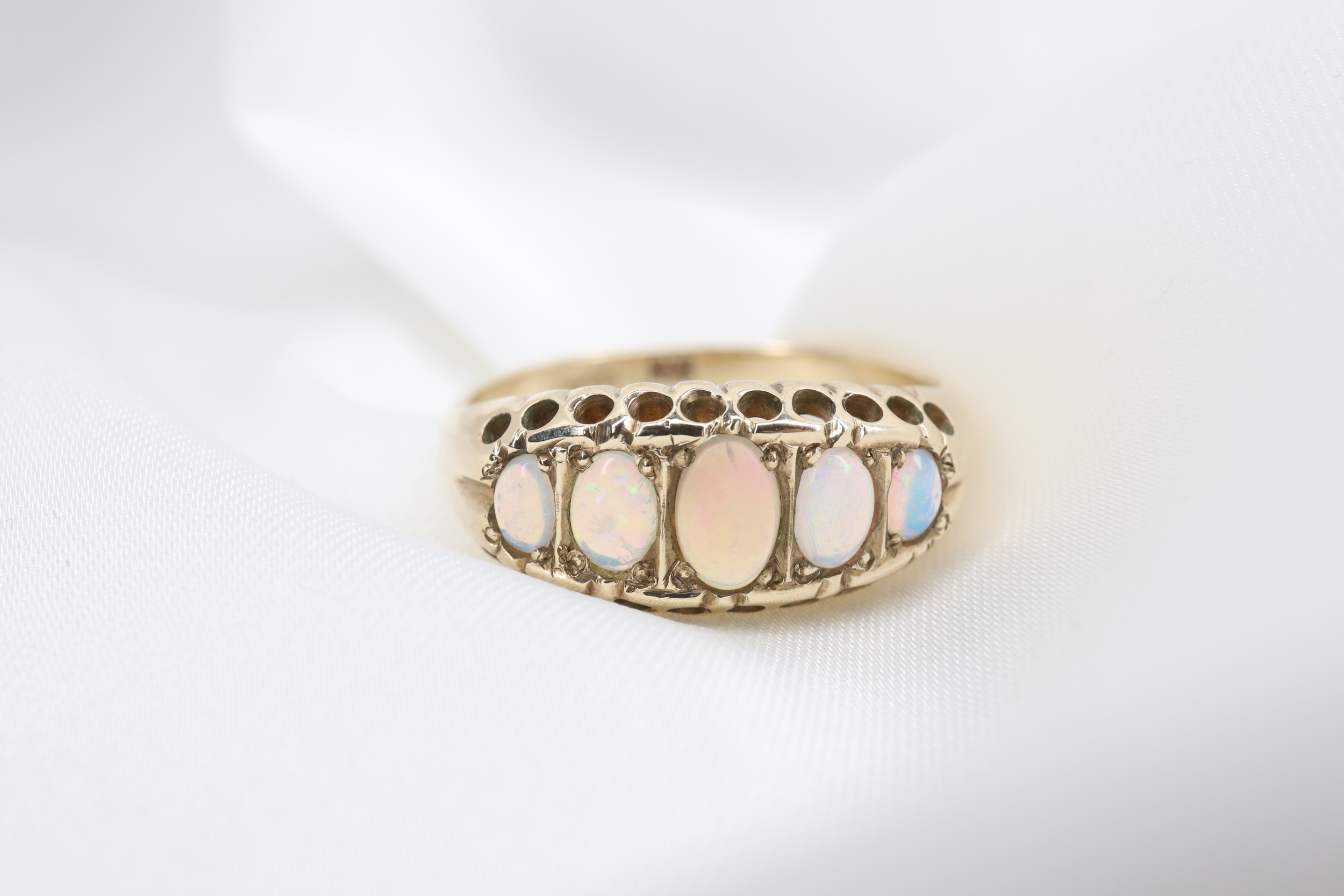 Złoty Pierścionek Vintage 9K (p.375) z 5 Naturalnymi Opalami, r. 17