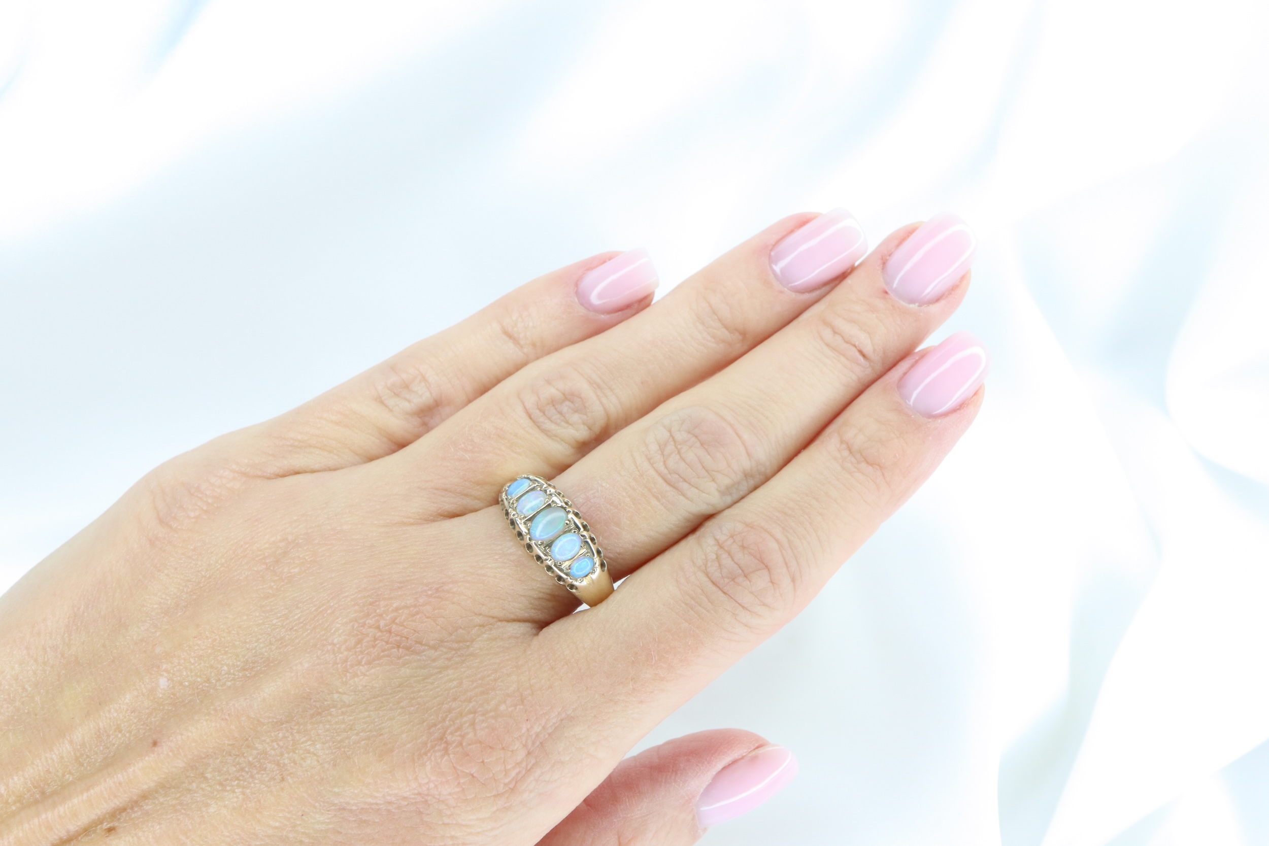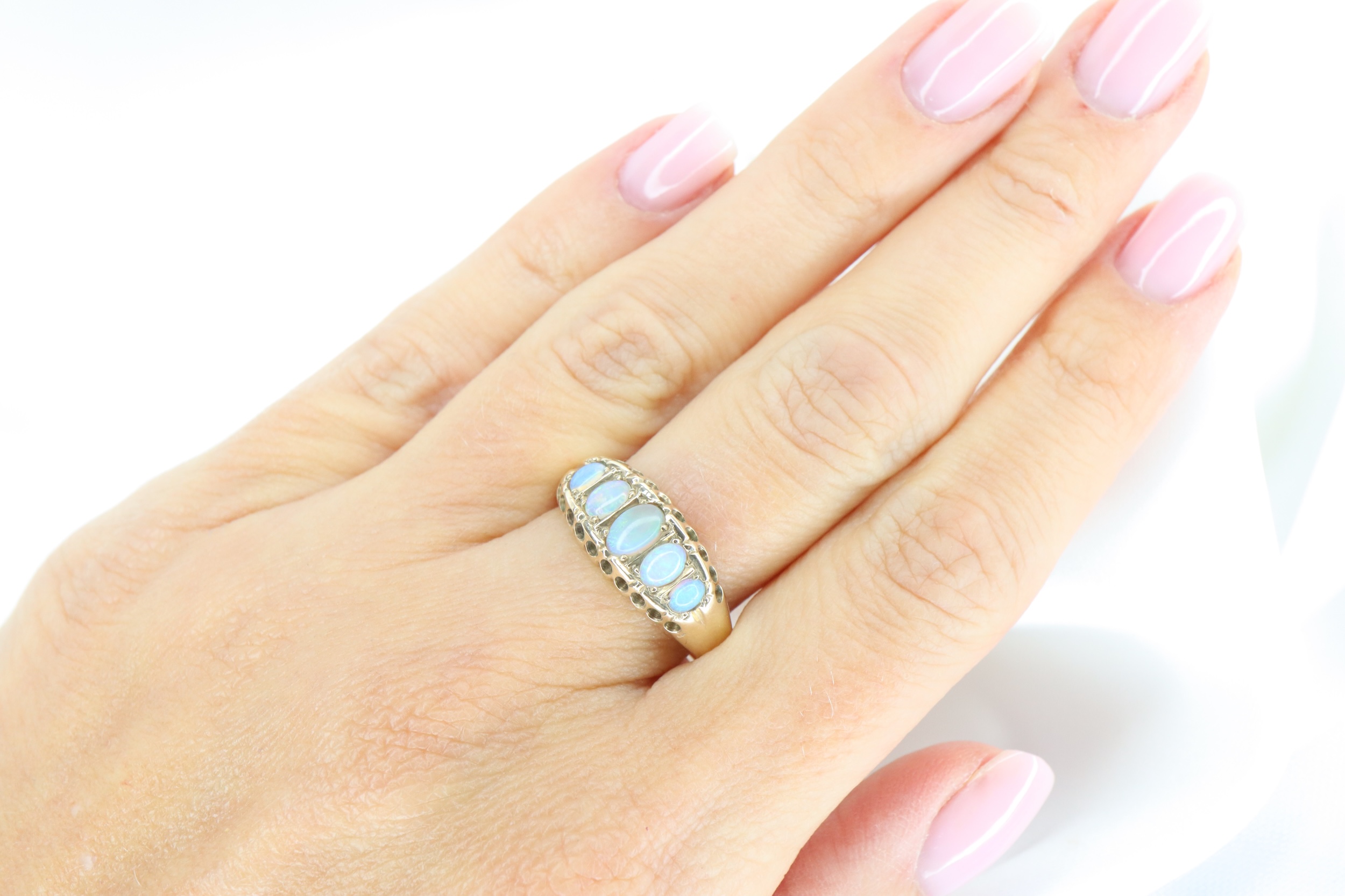 Strona główna » Sklep » Złoty Pierścionek Vintage 9K (p.375) z 5 Naturalnymi Opalami, r. 17
